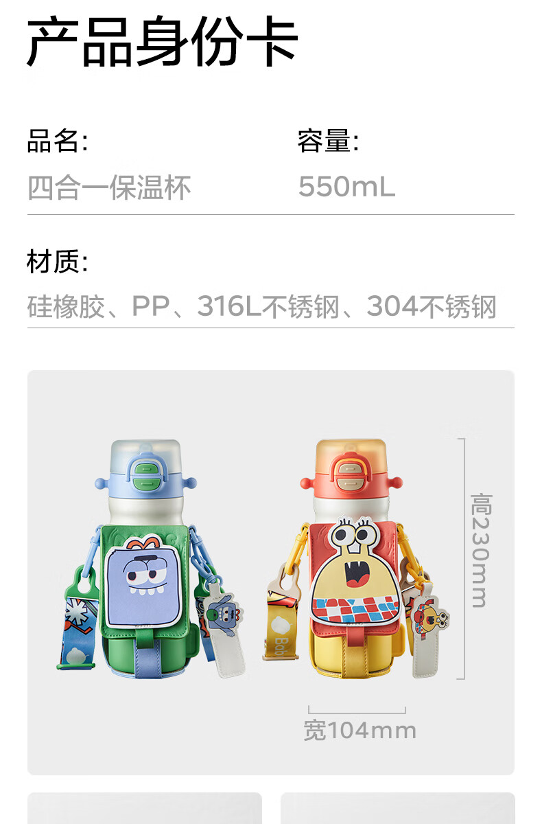 babycare四合一儿童保温杯 550ml-蒙因蓝-不含杯套