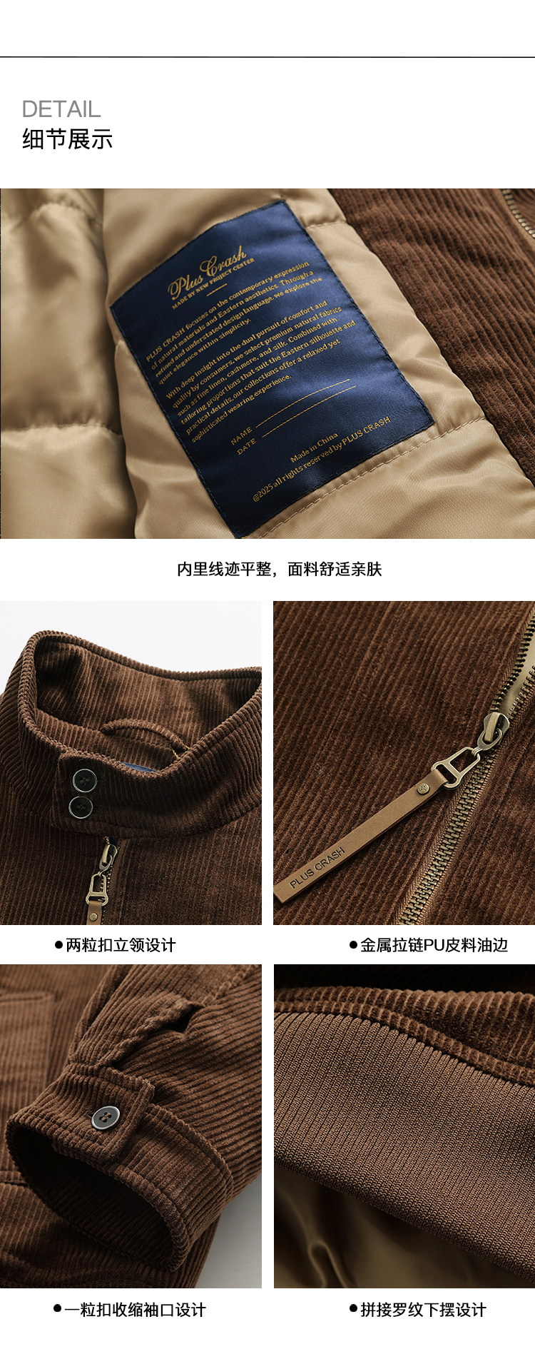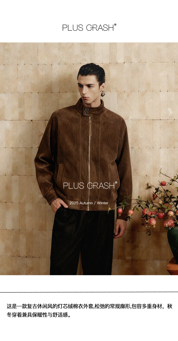 PLUS CRASH冬季新款灯芯绒加厚复古高级感百搭保暖老钱外套男女款