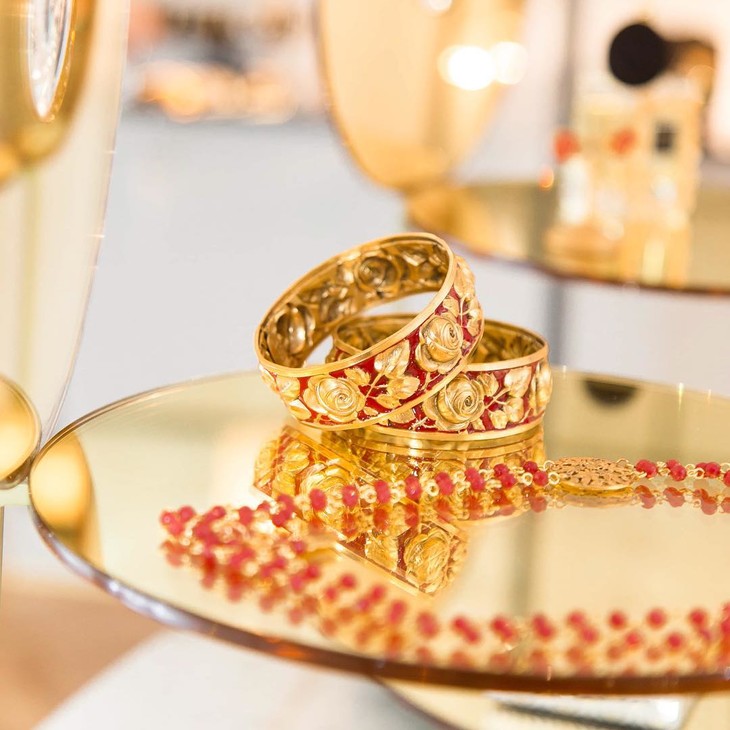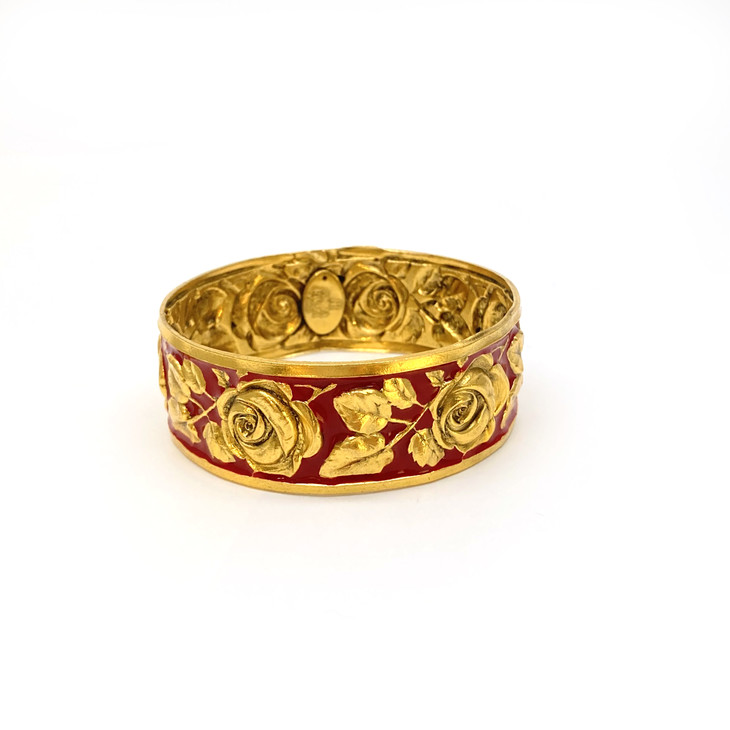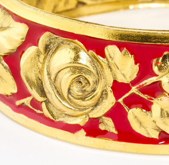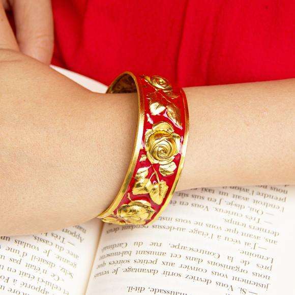 北京仓|Anna Rivka-BAGATELLE II-复古宫廷风 红色 玫瑰金叶 珐琅彩 手镯[法国设计师]