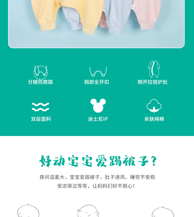 迪士尼儿童防踢被男女童春夏卡通可爱睡衣中小童宝宝韩版睡袋分腿