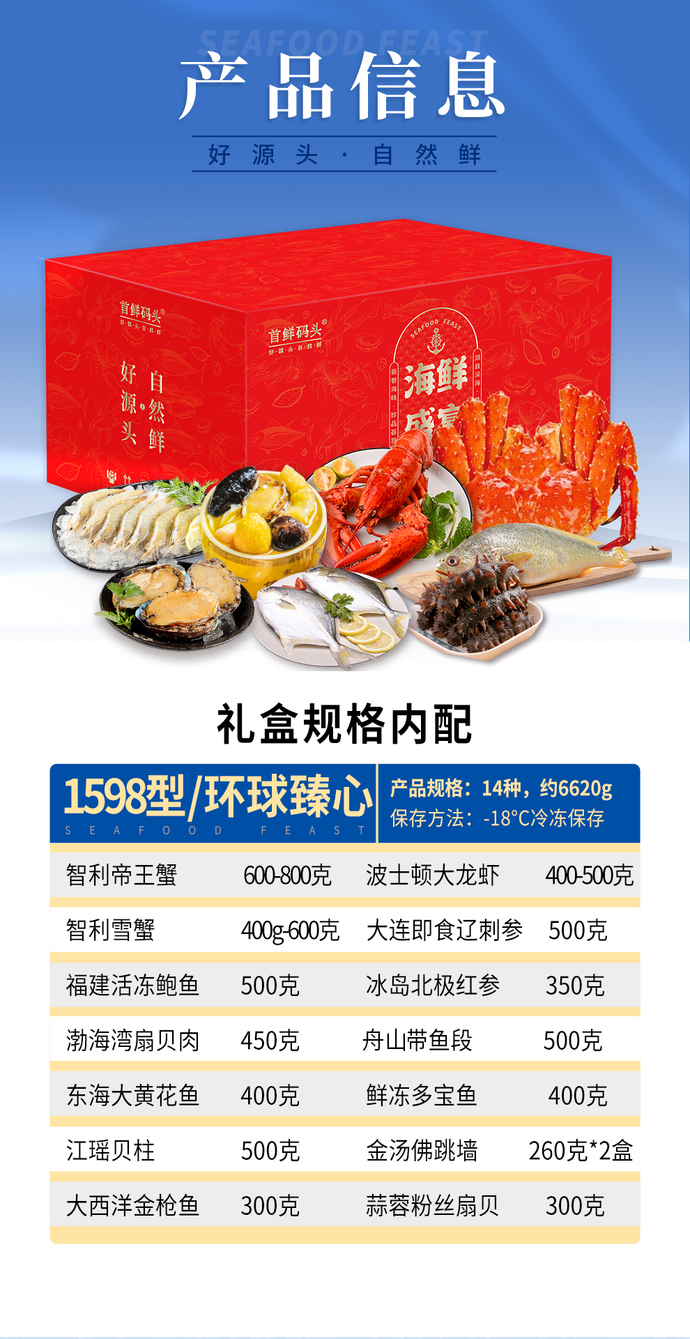 首鲜码头-海之臻心1598型海鲜礼盒6620g【ZHCYMCJ8.0】