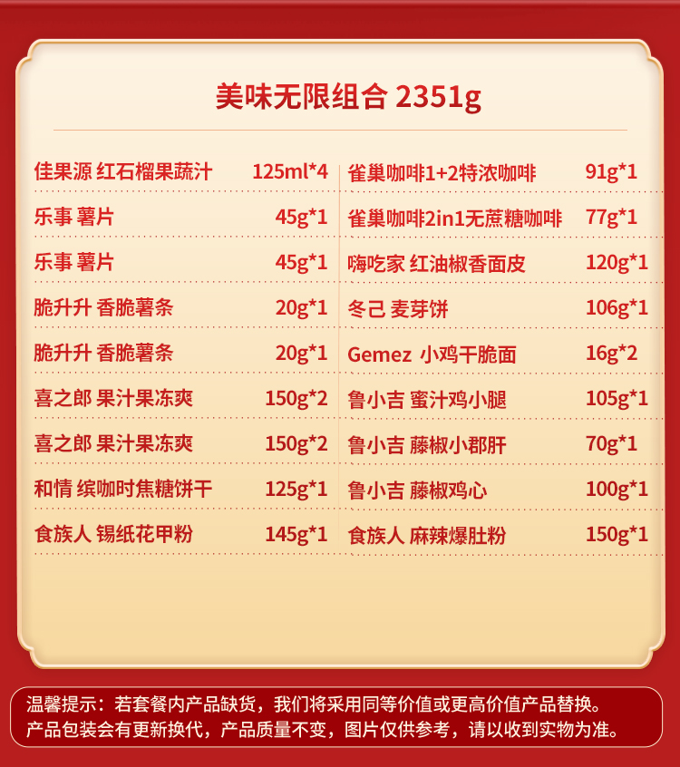 乐事/脆升升/雀巢/鲁小吉 美味无限组合 2351g