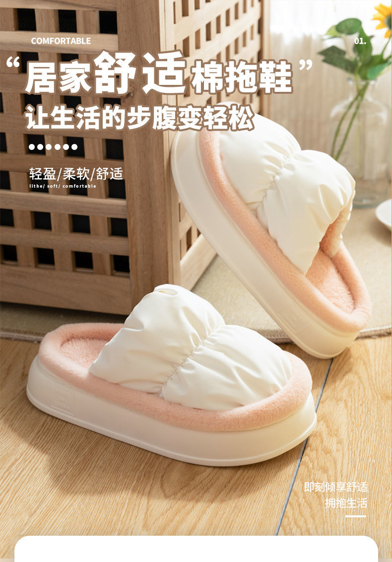 防水棉拖鞋女秋冬季厚底踩屎感棉鞋男士冬天室内防滑家居家用加厚