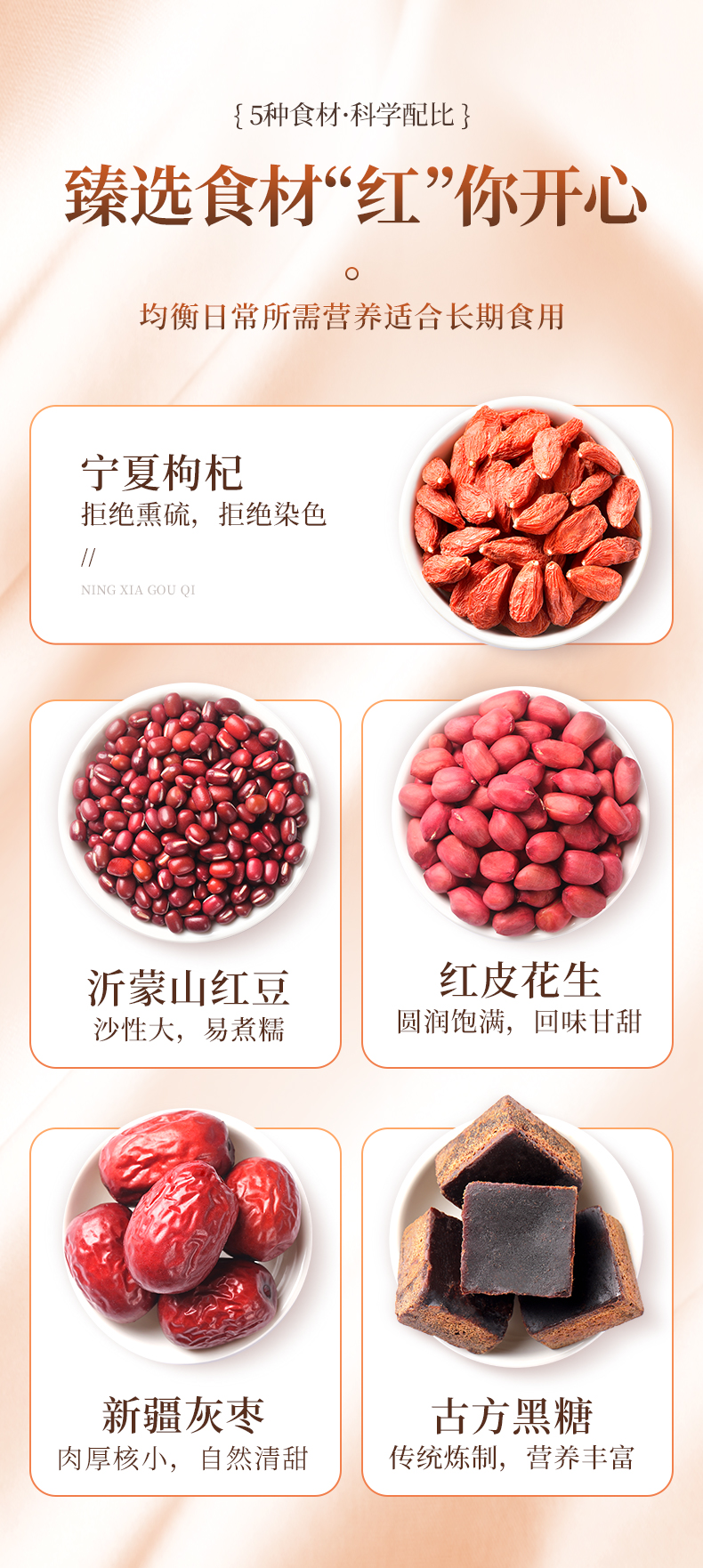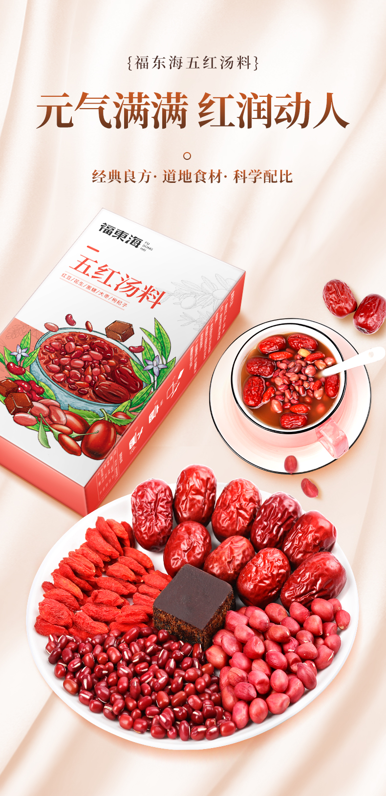 福东海 五红汤料500克 红皮花生红豆红糖枸杞材料包 煮汤干货材料