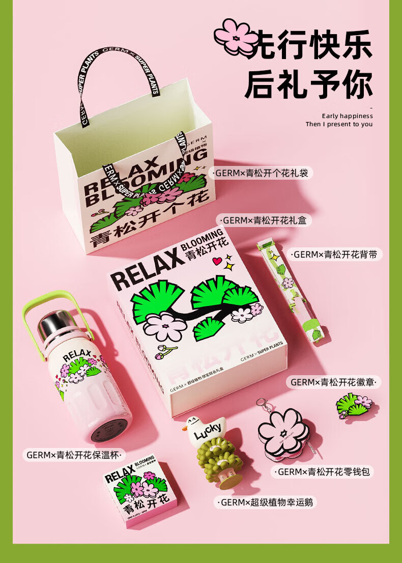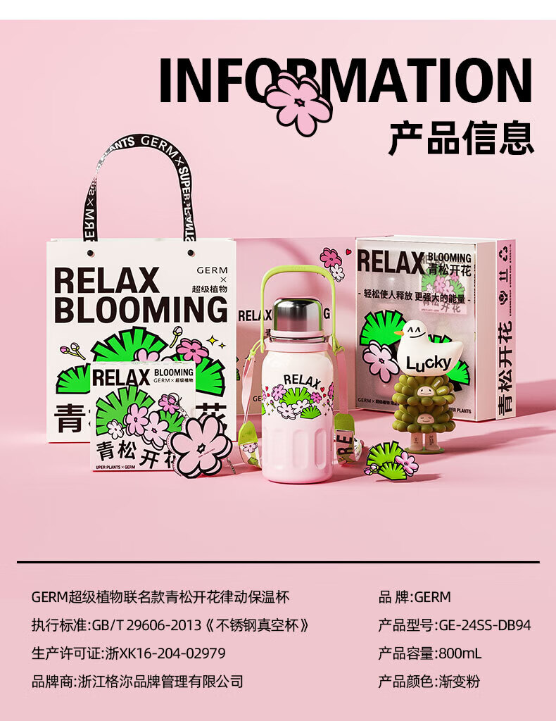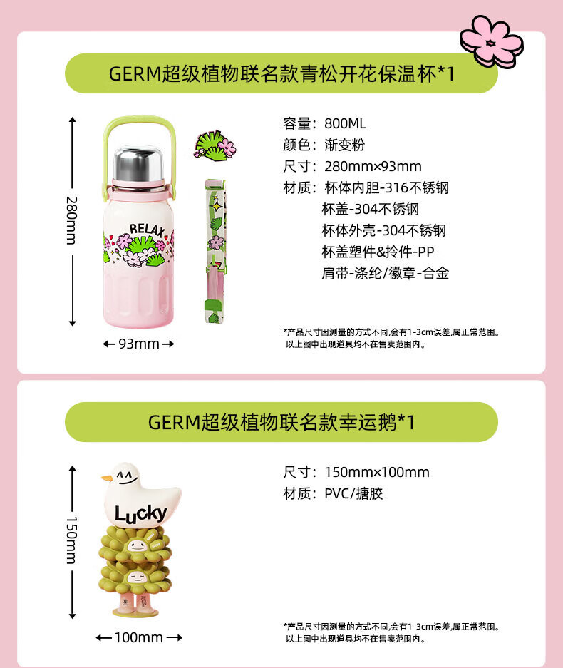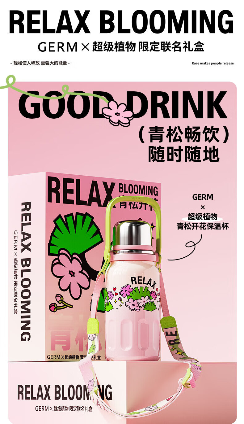【6F】多样屋格沵(germ)保温杯超级植物联名316不锈钢真空大容量户外壶露营律动保温杯子 青松开花 800ml