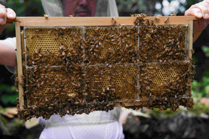 蜂巢蜜,也称"封盖蜜",由蜂巢和蜂蜜两部分组成。具有花香馥郁,蜜质浓稠,滋味甘醇的特点。把盒子直接放入蜂箱,蜜蜂在盒里筑巢,酿蜜,并封上蜡盖。