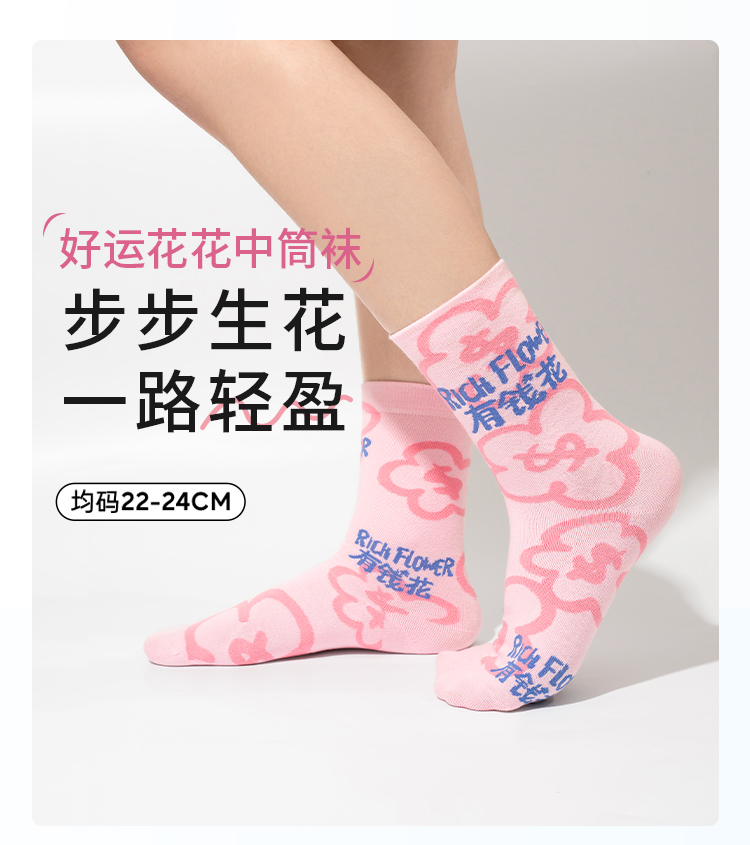【积分兑换】奶糖派奶糖派好运花花舒适弹力中筒袜(随正装拍下免运费)