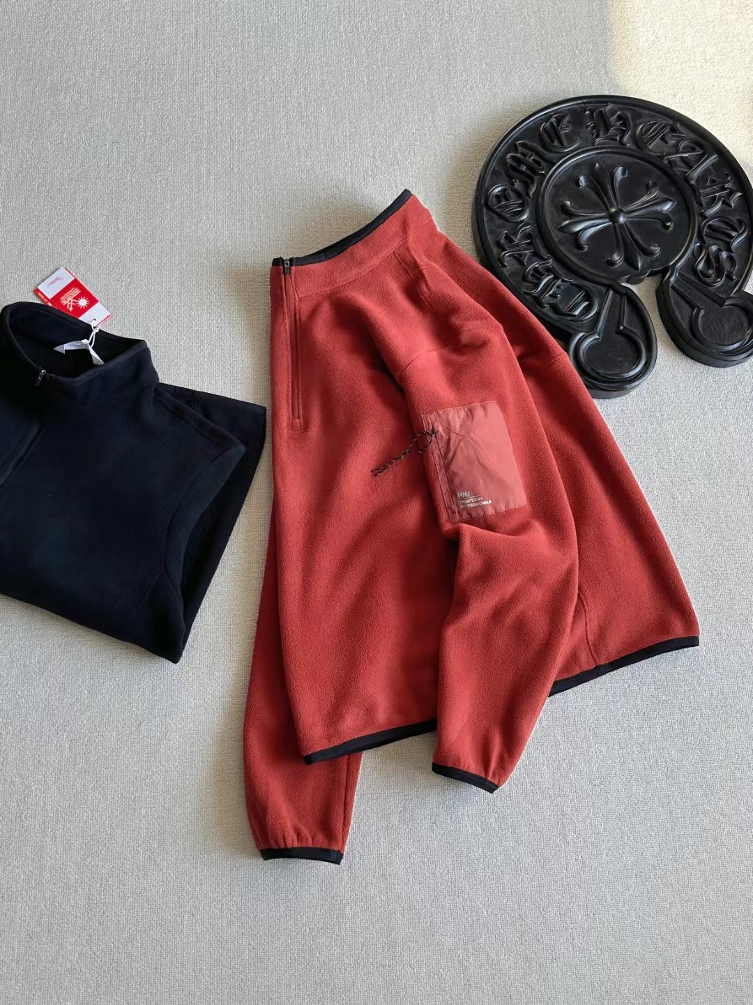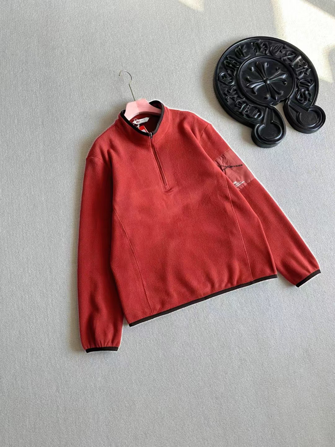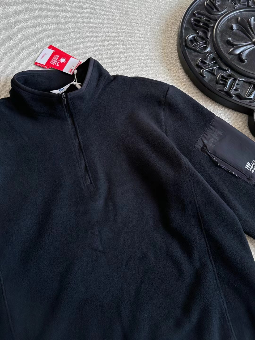 采用意大利进口双面摇粒抓绒面料,特别亲肤柔软,保暖效果比一般打底高数倍,透气性好,并且非常轻量化。摩擦起热无静电。宽松版型!立体裁剪,全身多出拼接而成,上身舒适有型。多种穿衣场景!可以打底,做中间层,单穿都适合!特别实用好穿的一款半高领半拉链设计,穿脱方便,保暖舒适,好看,左臂梭织拼接口袋,可贴身储物。