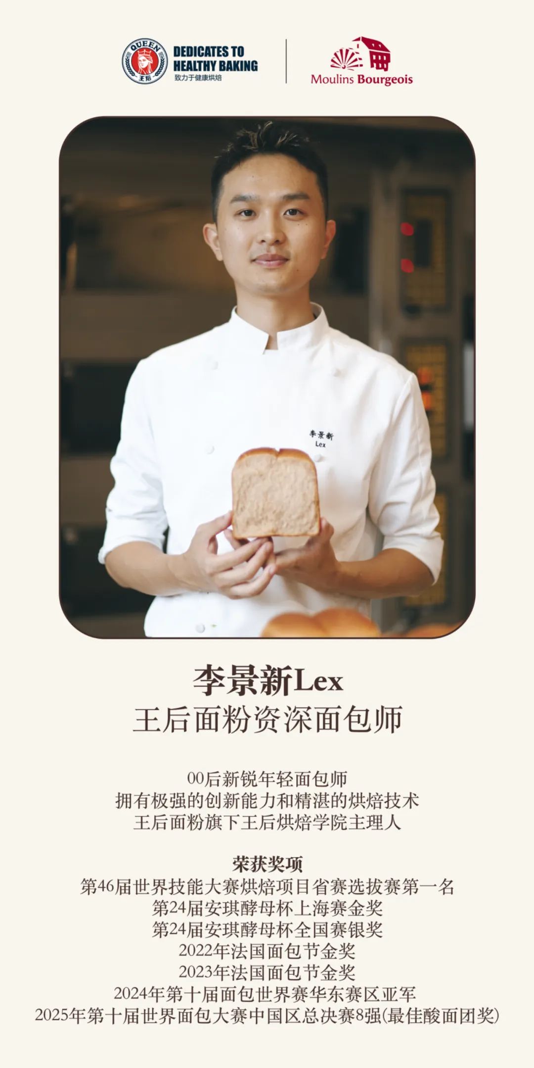 资深王后面包师授课:本次北京场由王后面粉资深面包师团队执教(曾跟随多位世界冠军学习,拥有丰富教学与实战经验),带来前沿的面包理念与技法。本次北京场公开课的授课老师是王后面粉资深面包师——李景新Lex。