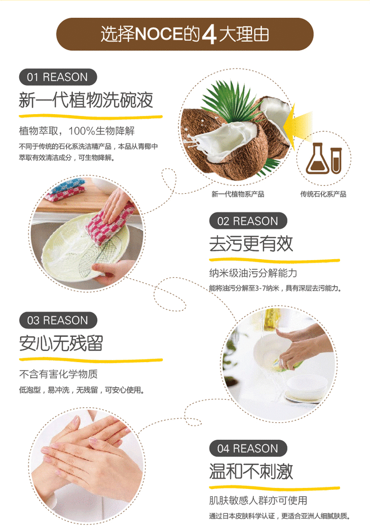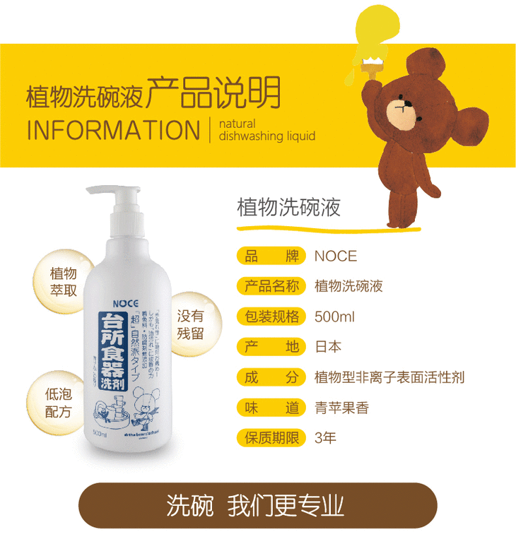 用于餐具、果蔬、婴幼儿用品 · 日本NOCE植物洗碗液-青苹果香 500ml|一般贸易
