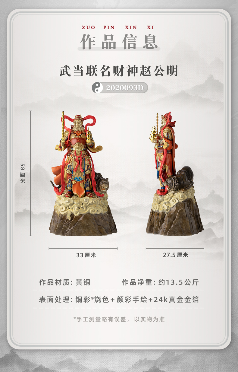 铜师傅 正版授权《武当联名财神赵公明》客厅桌面家居装饰铜摆件