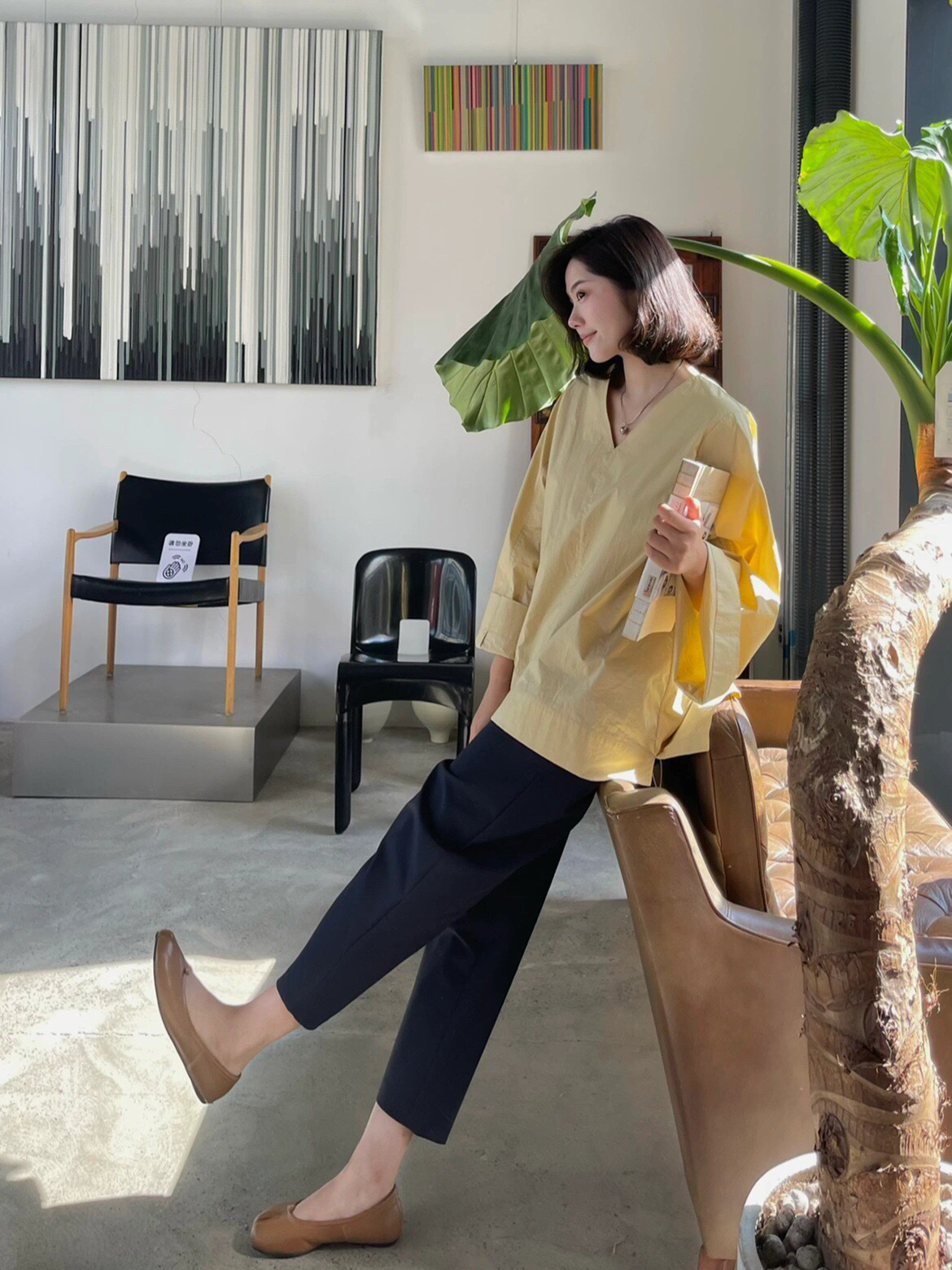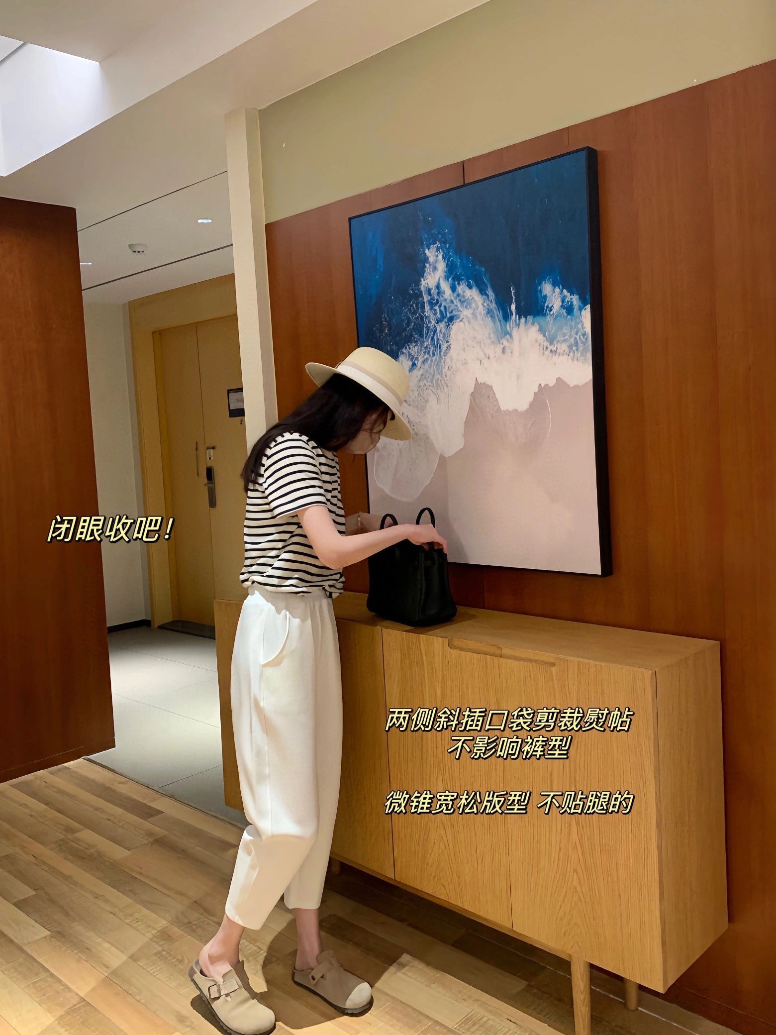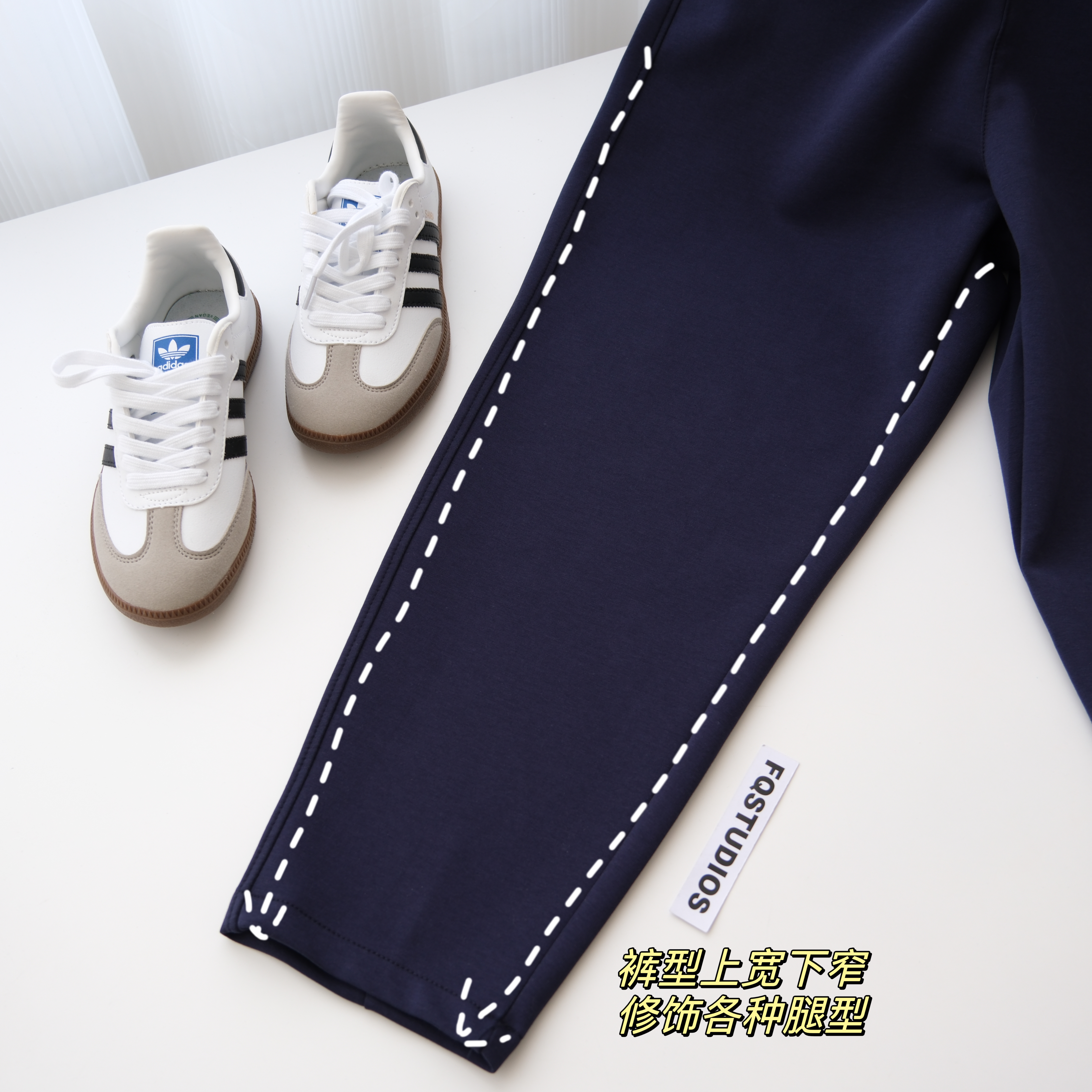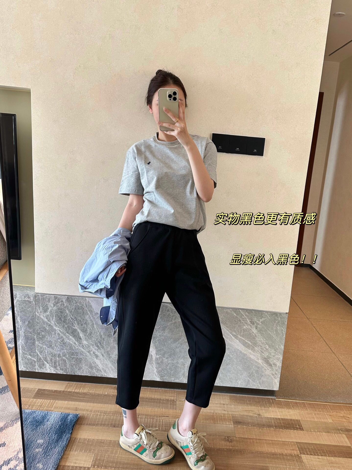 萝卜裤型,在视觉上拉伸腿线,利落又显高!九分裤长,高个子小个子都很好驾驭。