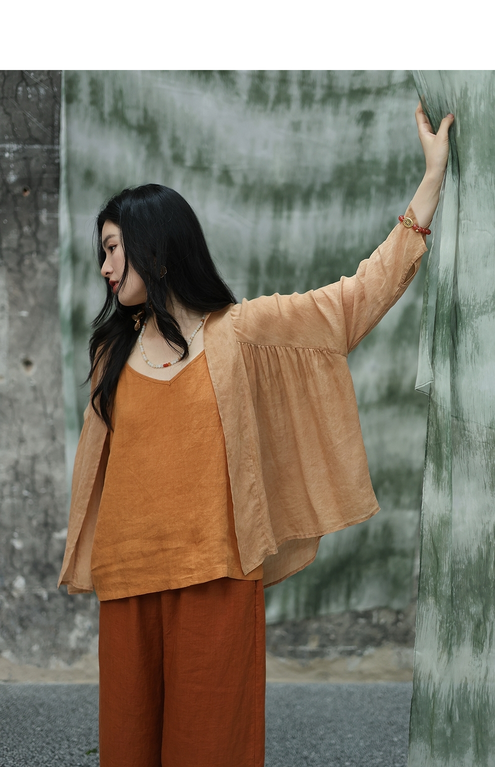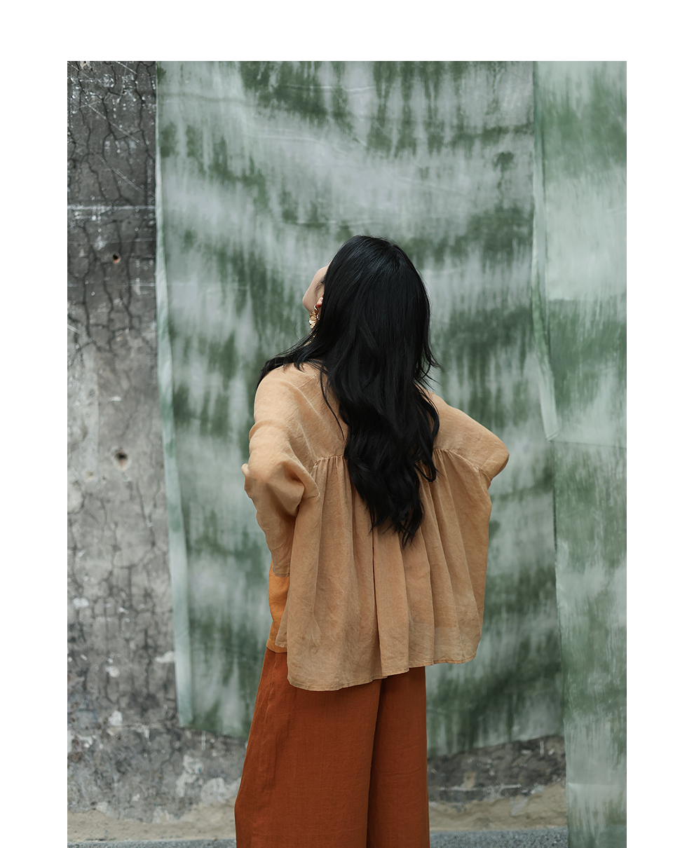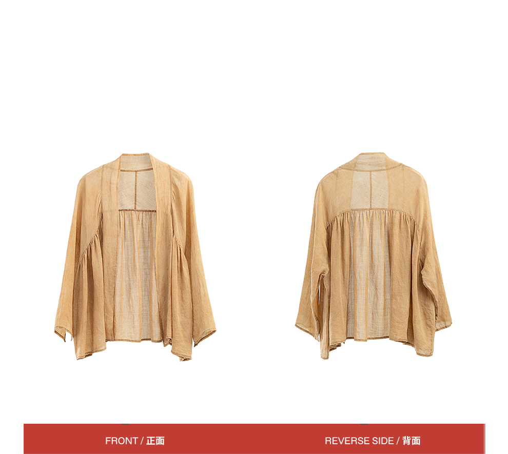 绽放旅行女装347朵/【甜茶系列·黄茶】砂洗苎麻茶染短开衫短外套限量