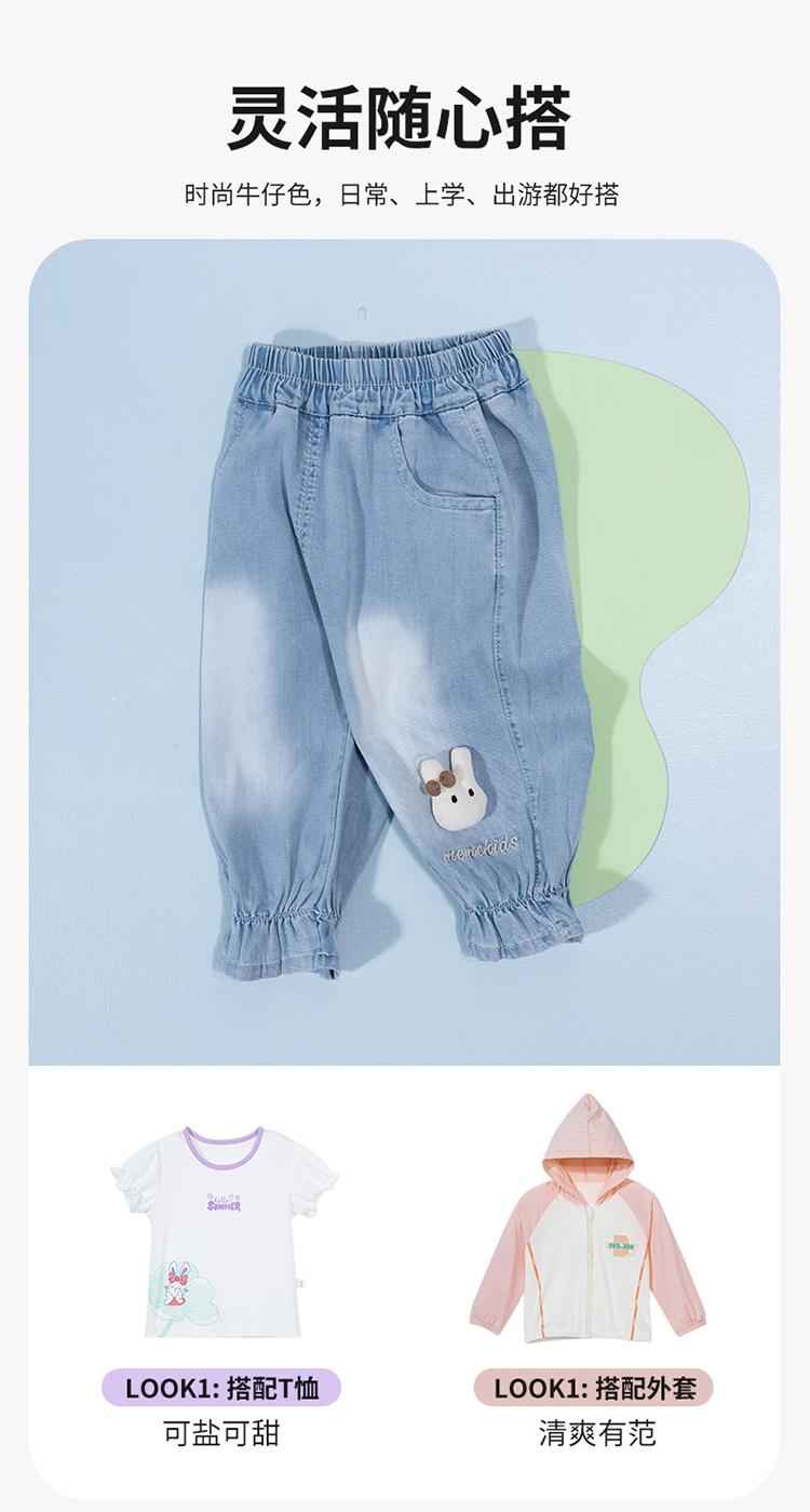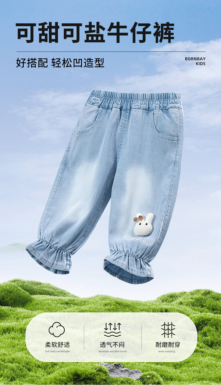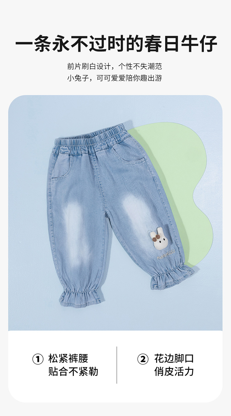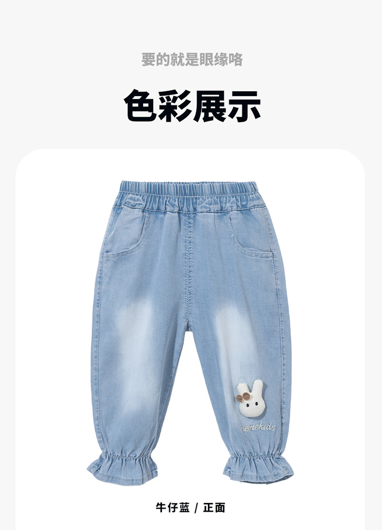 贝贝怡儿童2024新款夏季薄款女童装大童夏装长裤夏款休闲牛仔裤子