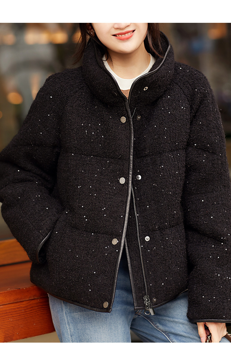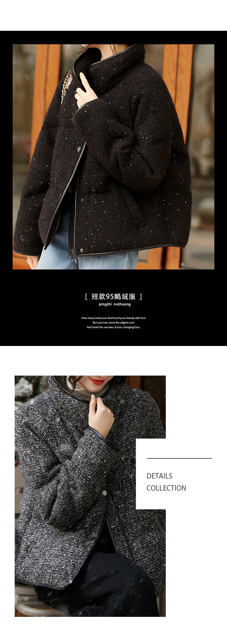 繁星羽绒!2024羊毛编织粗花呢95鹅绒服短款外套小香风羽绒服秋冬女装!