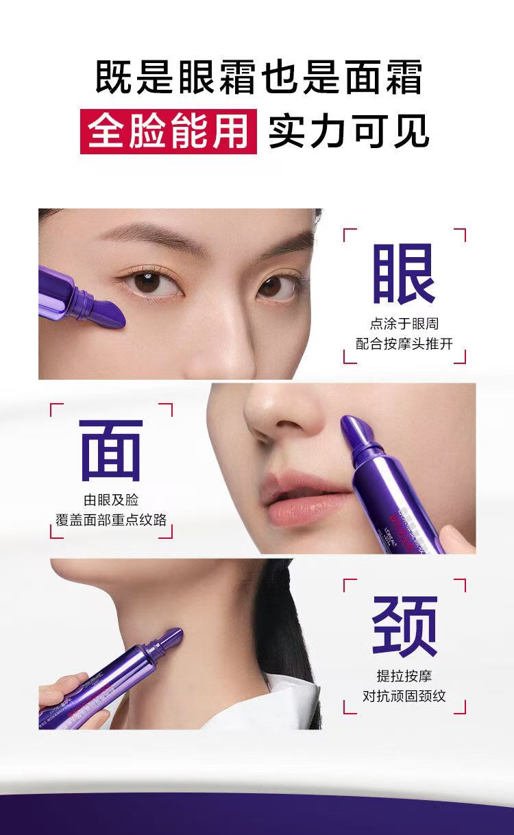 【3.8女神节秒杀】到手60ml 欧莱雅第三代紫熨斗眼霜玻色因抗皱紧致淡黑眼圈30ml+7.5ml*4