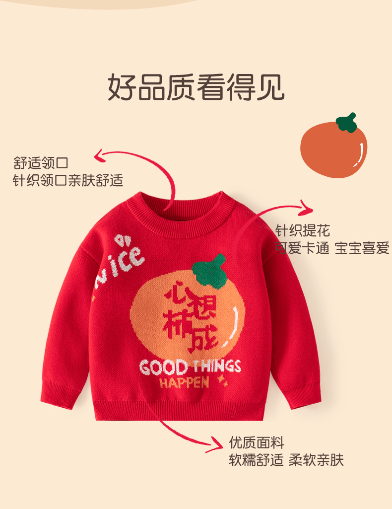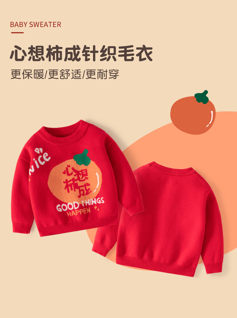 心想柿成纯棉韩版儿童毛衣A类套头针织婴儿毛衣春秋加厚儿童毛衣