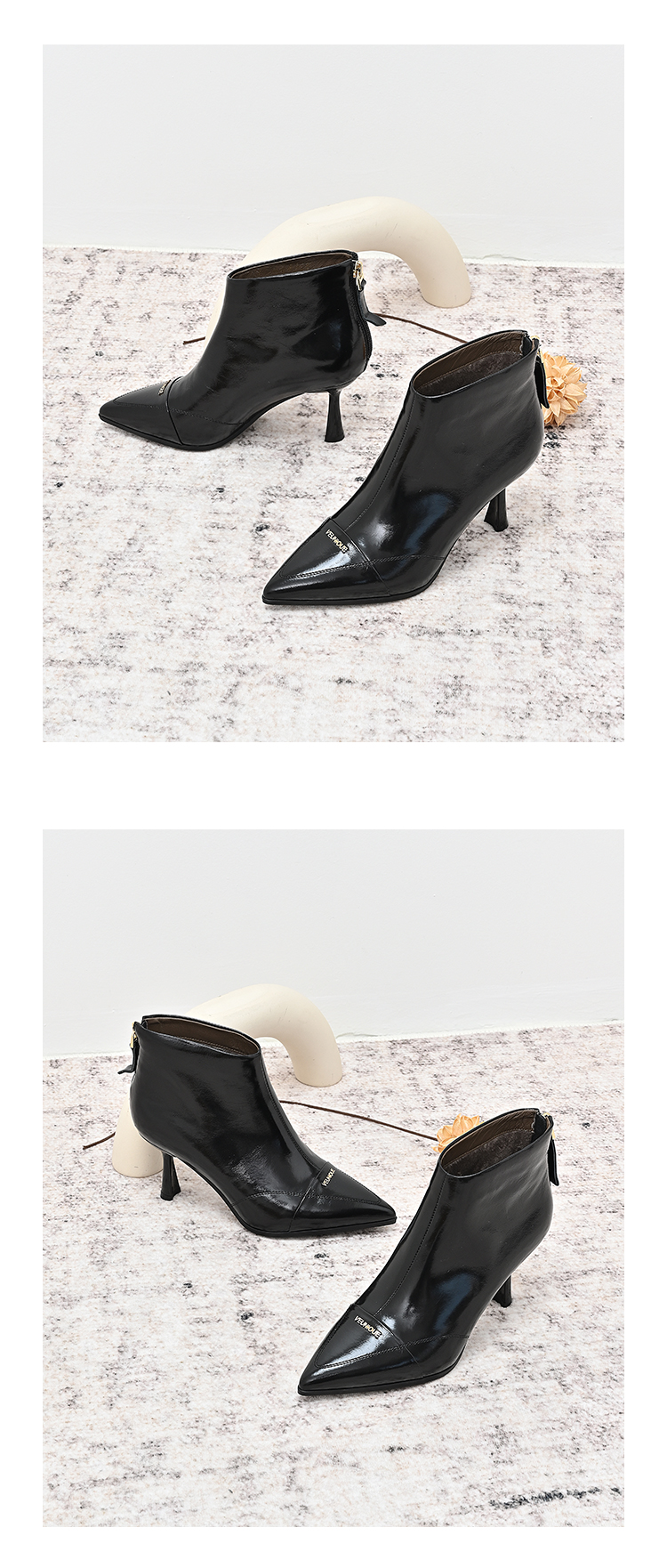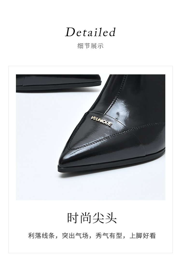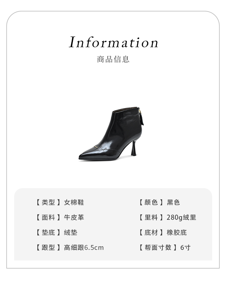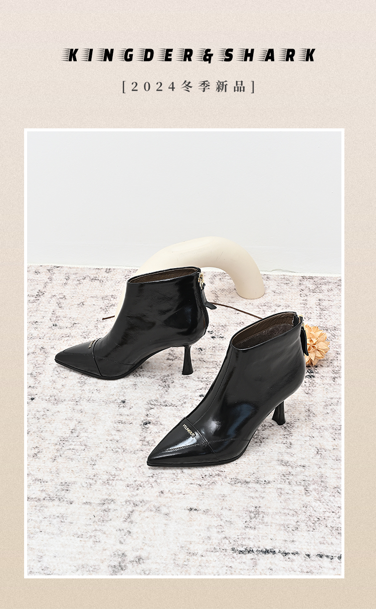 经典鲨2024年冬季新款优雅尖头细高跟后拉链及踝时装短靴女KC00-D58031