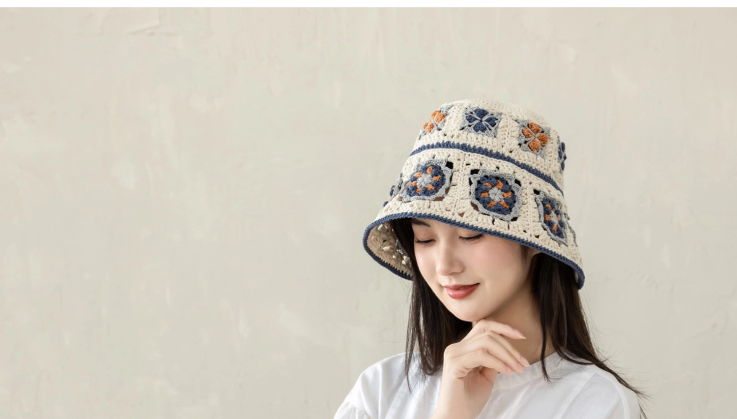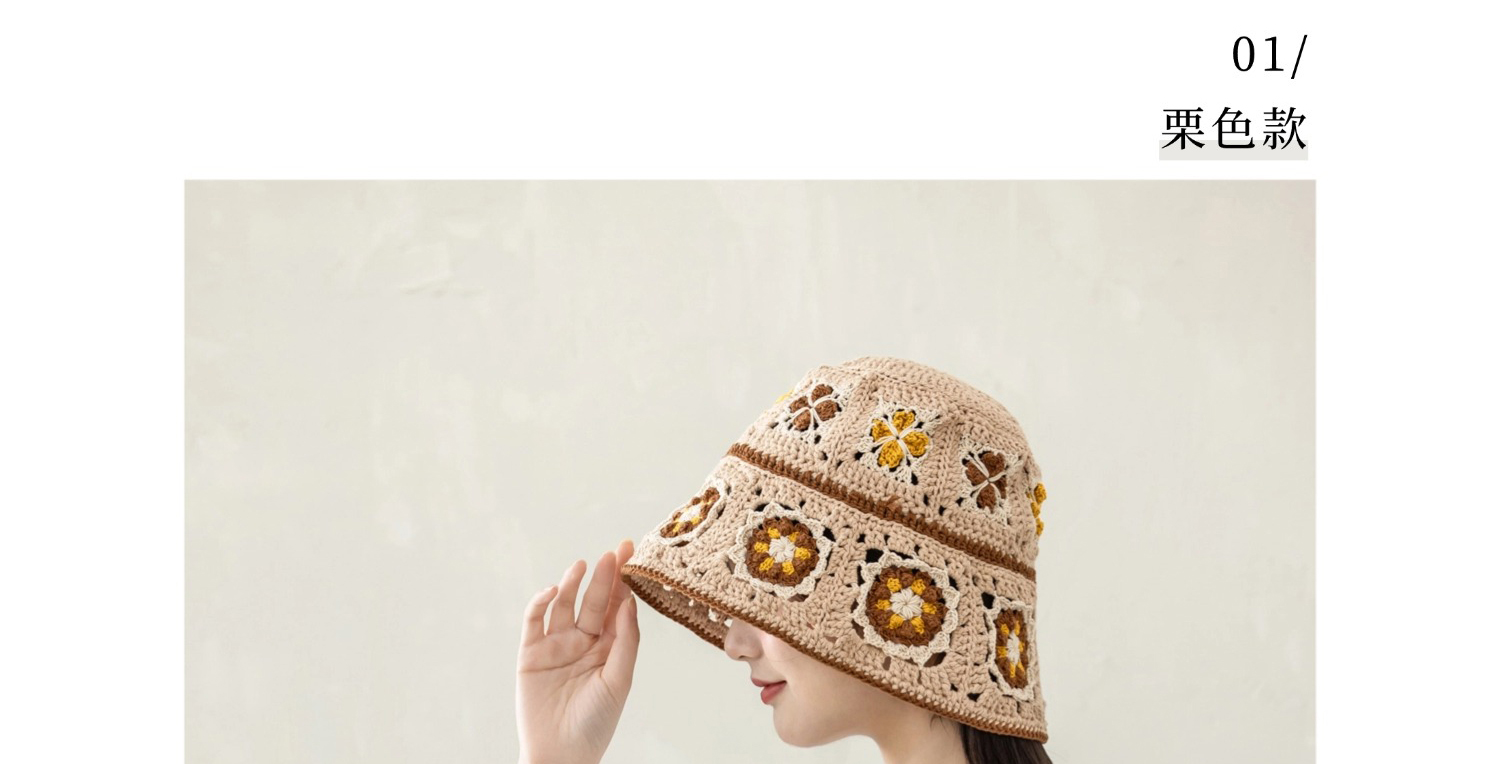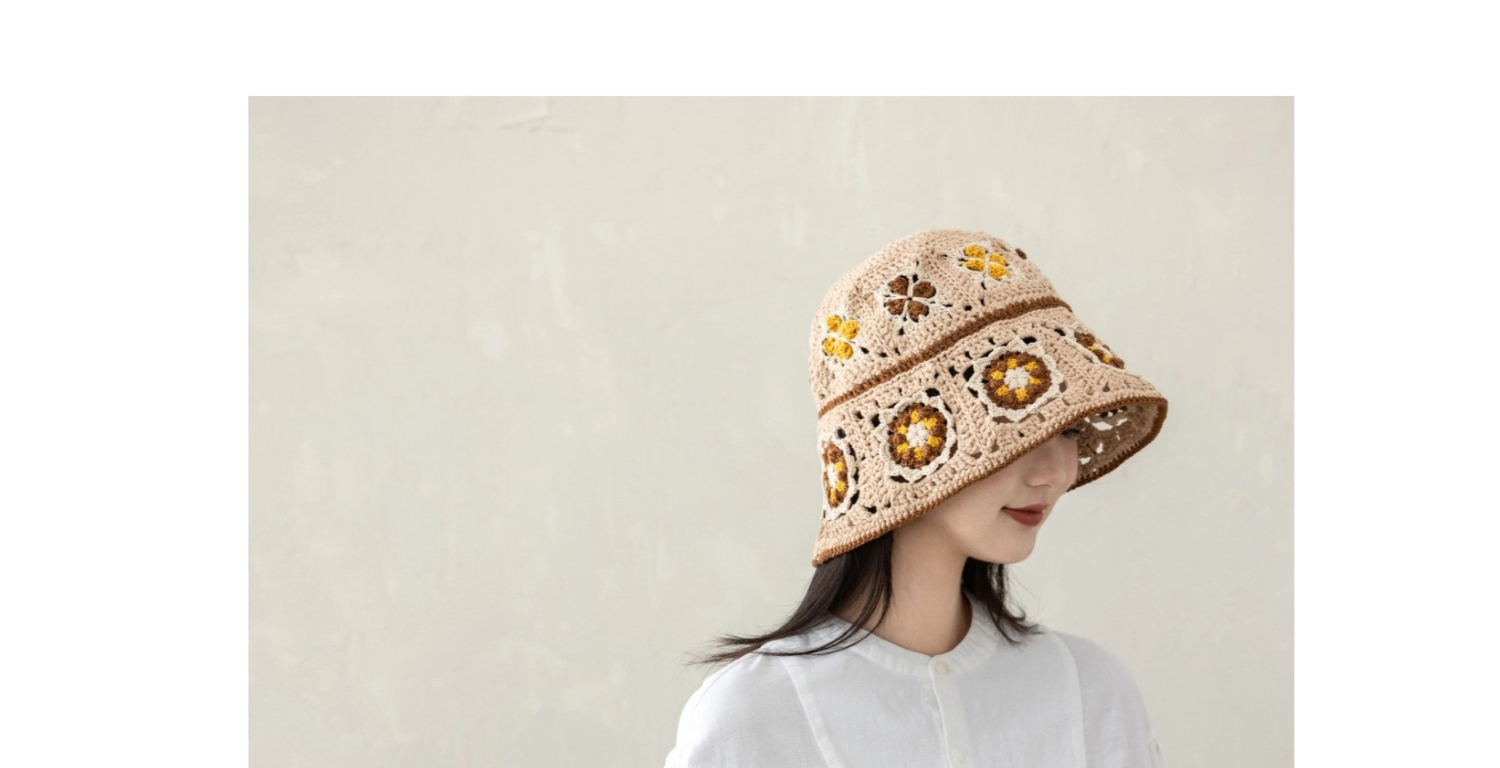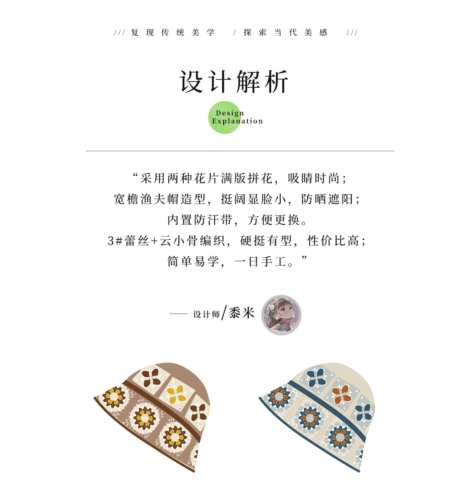 苏苏姐家岚野拼花渔夫帽手工diy钩针编织遮阳帽毛线团材料包