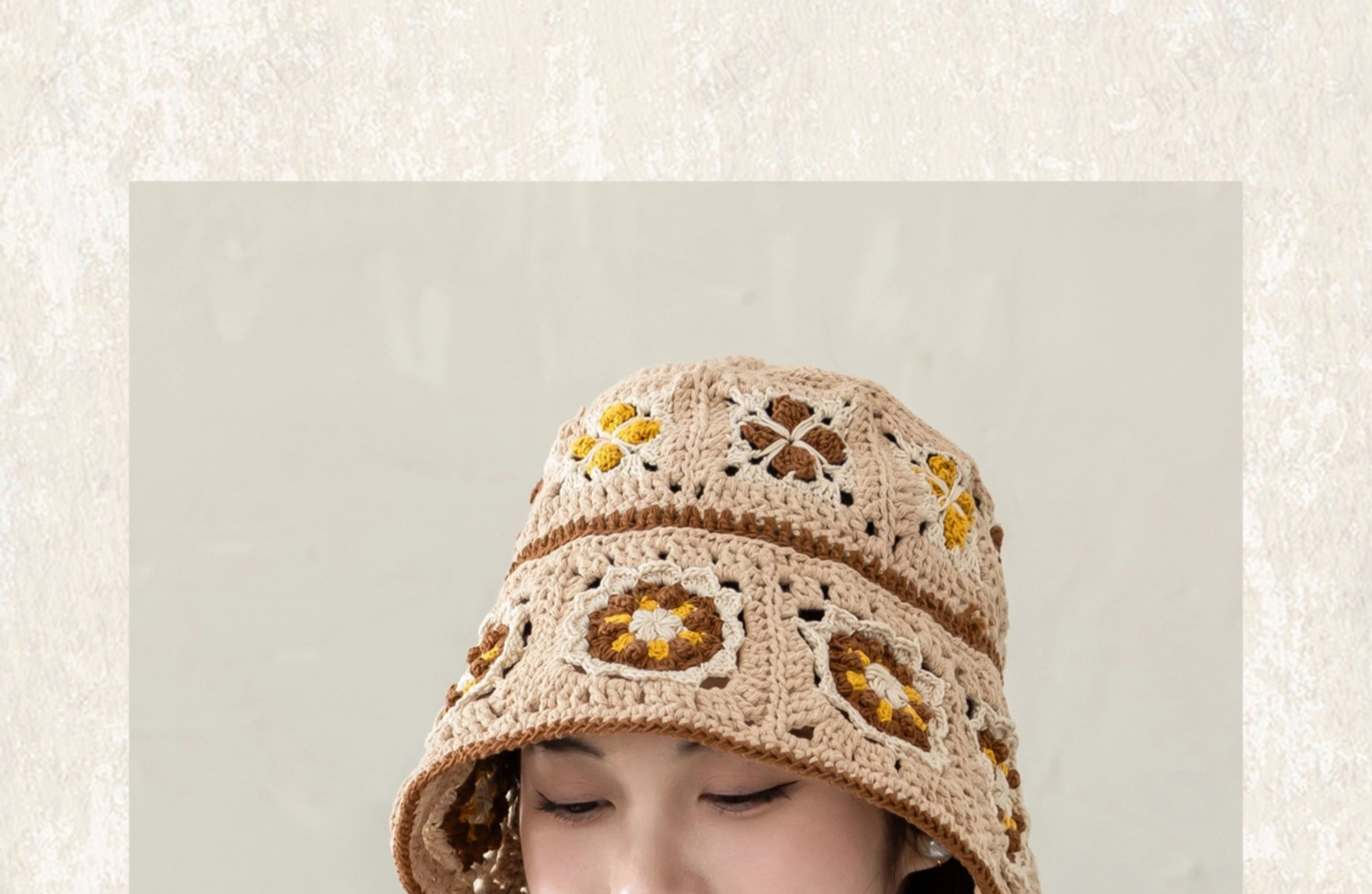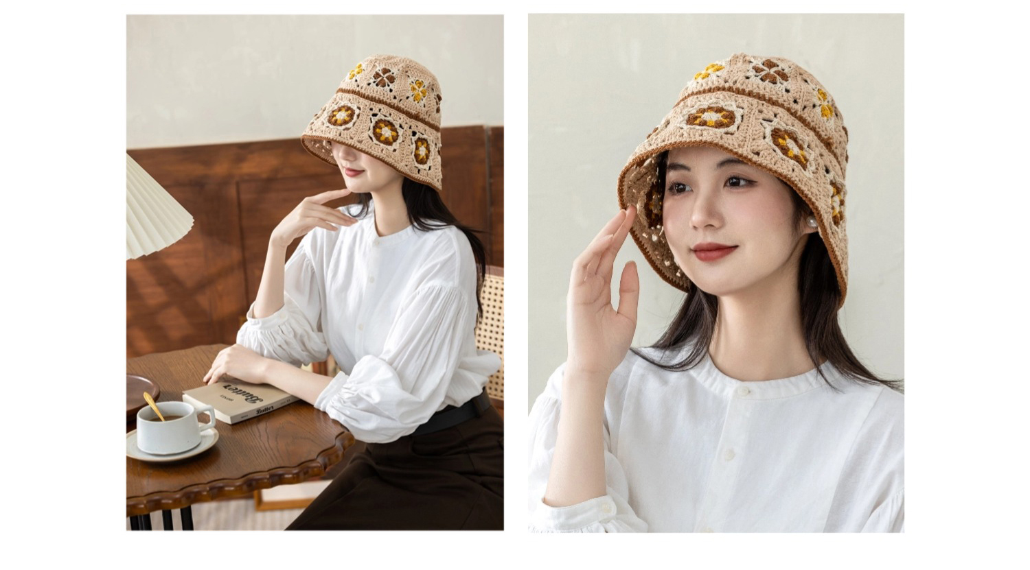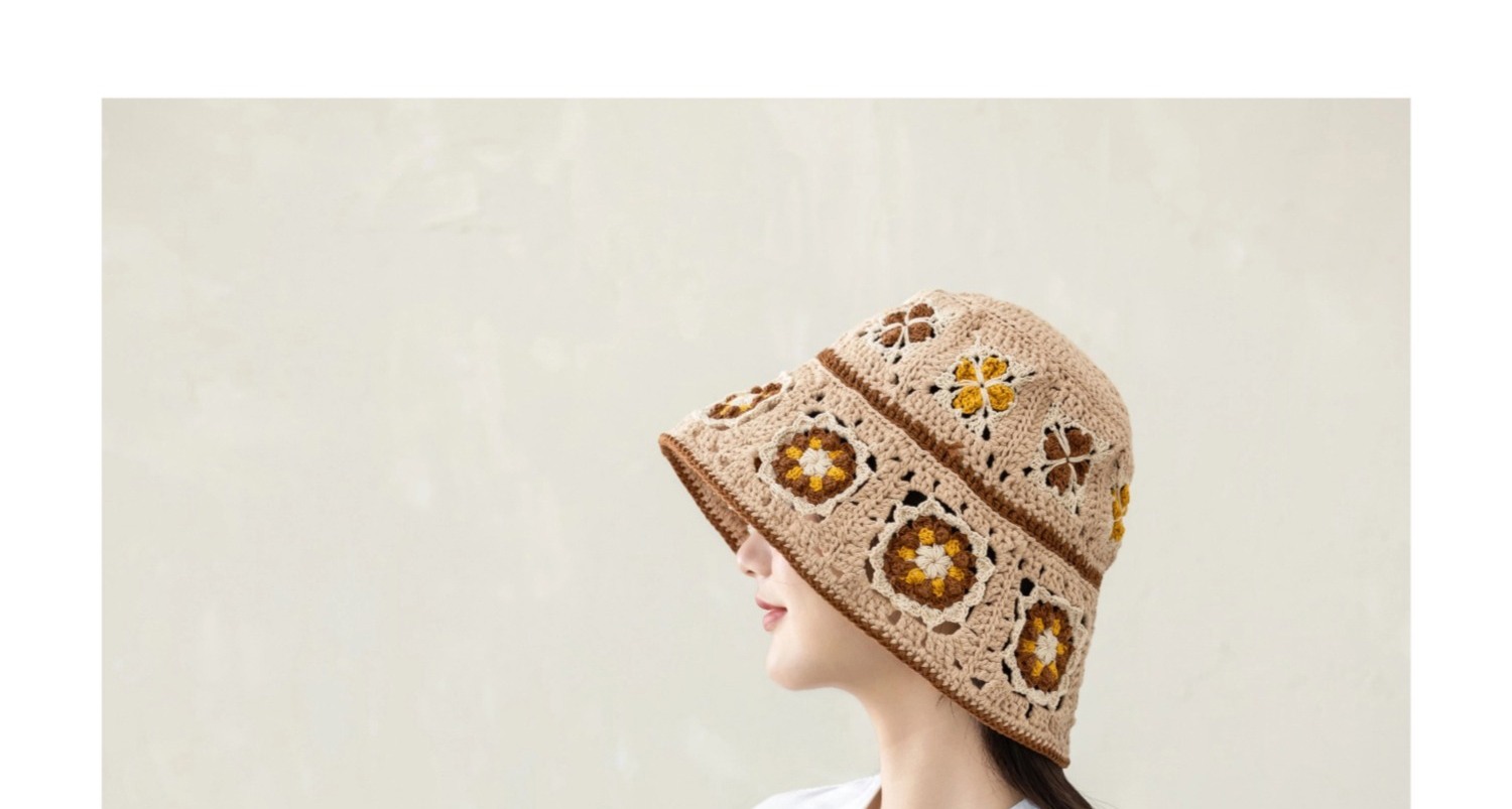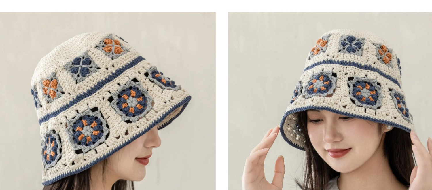 苏苏姐家岚野拼花渔夫帽手工diy钩针编织遮阳帽毛线团材料包