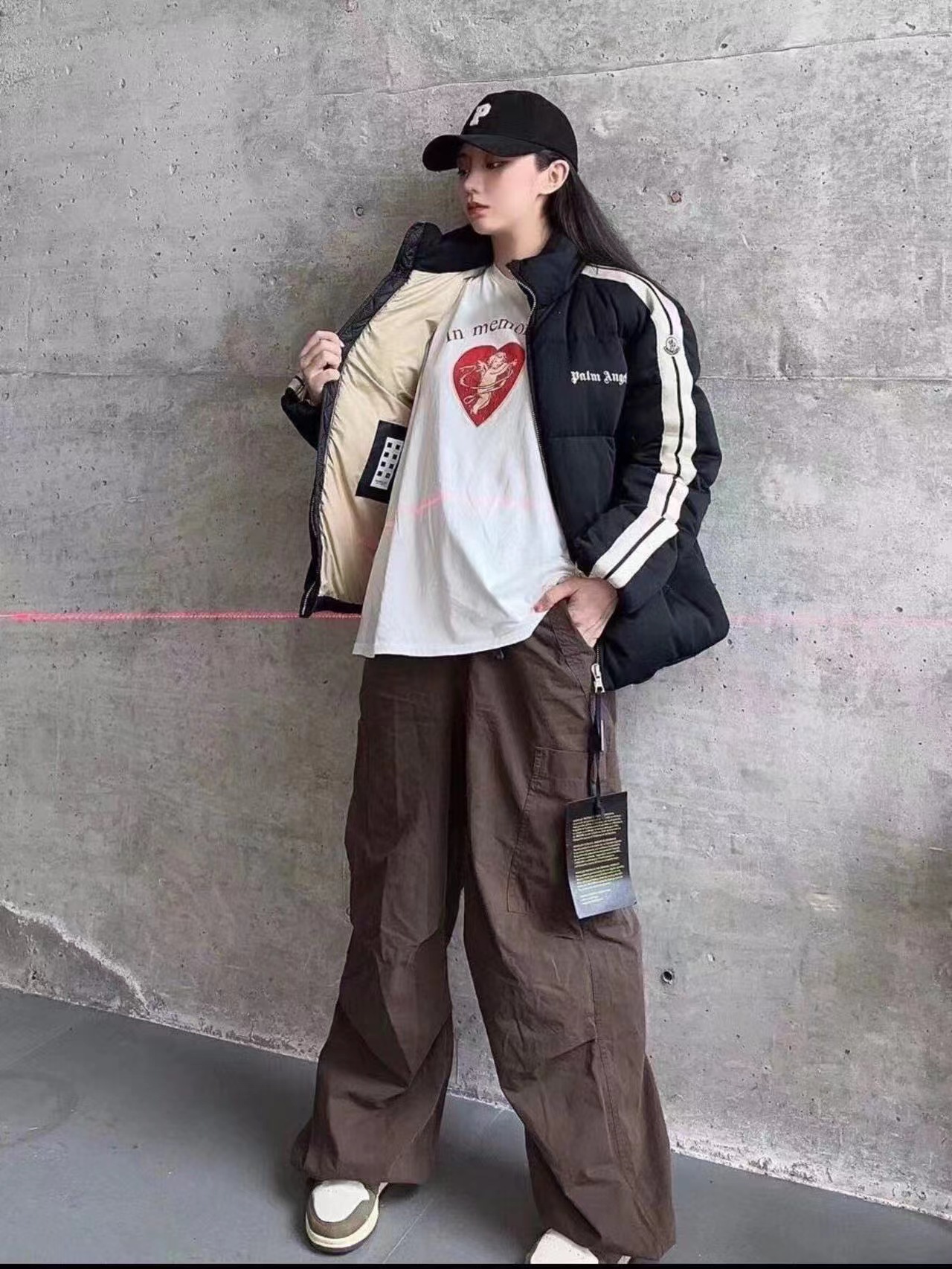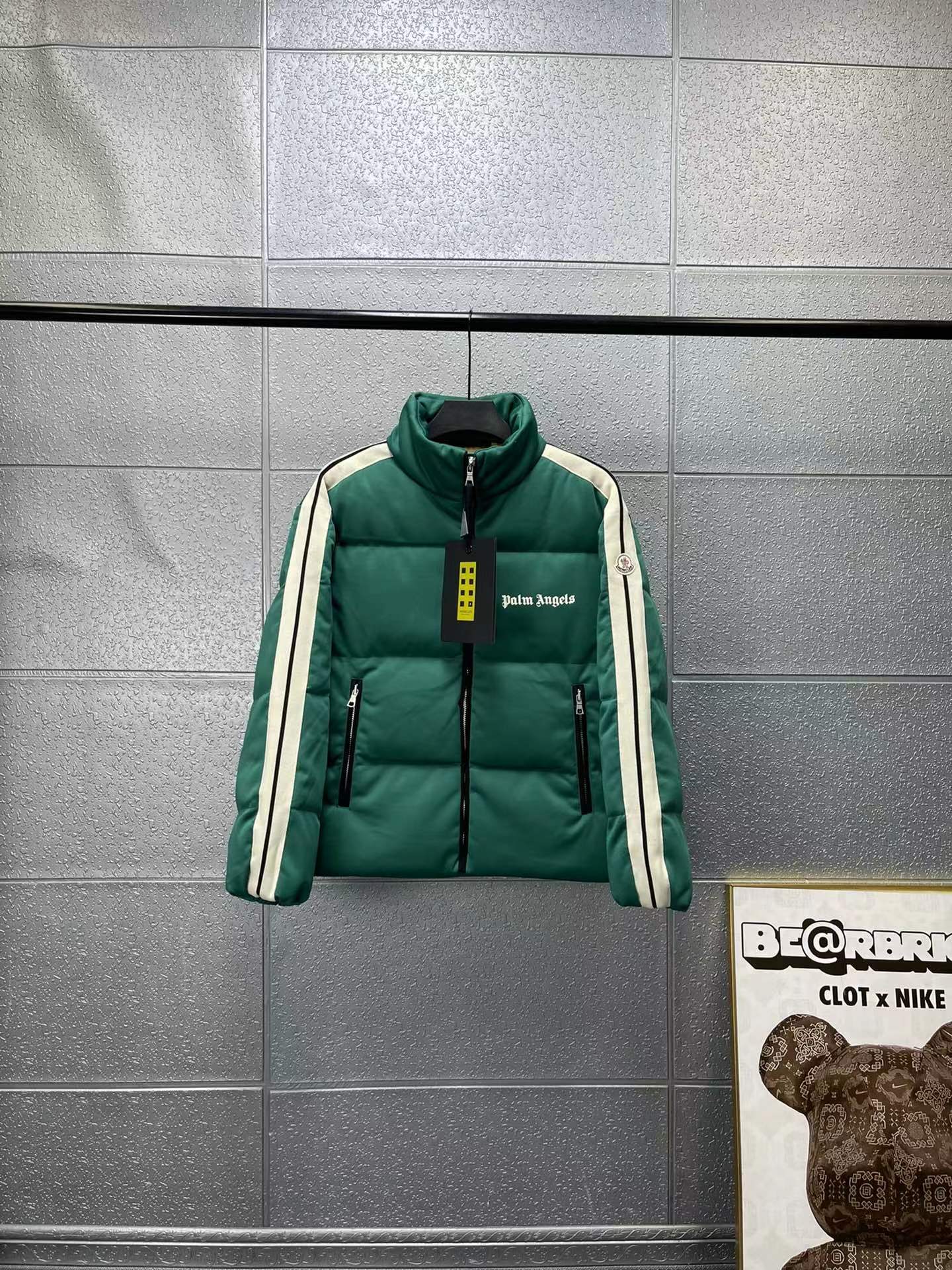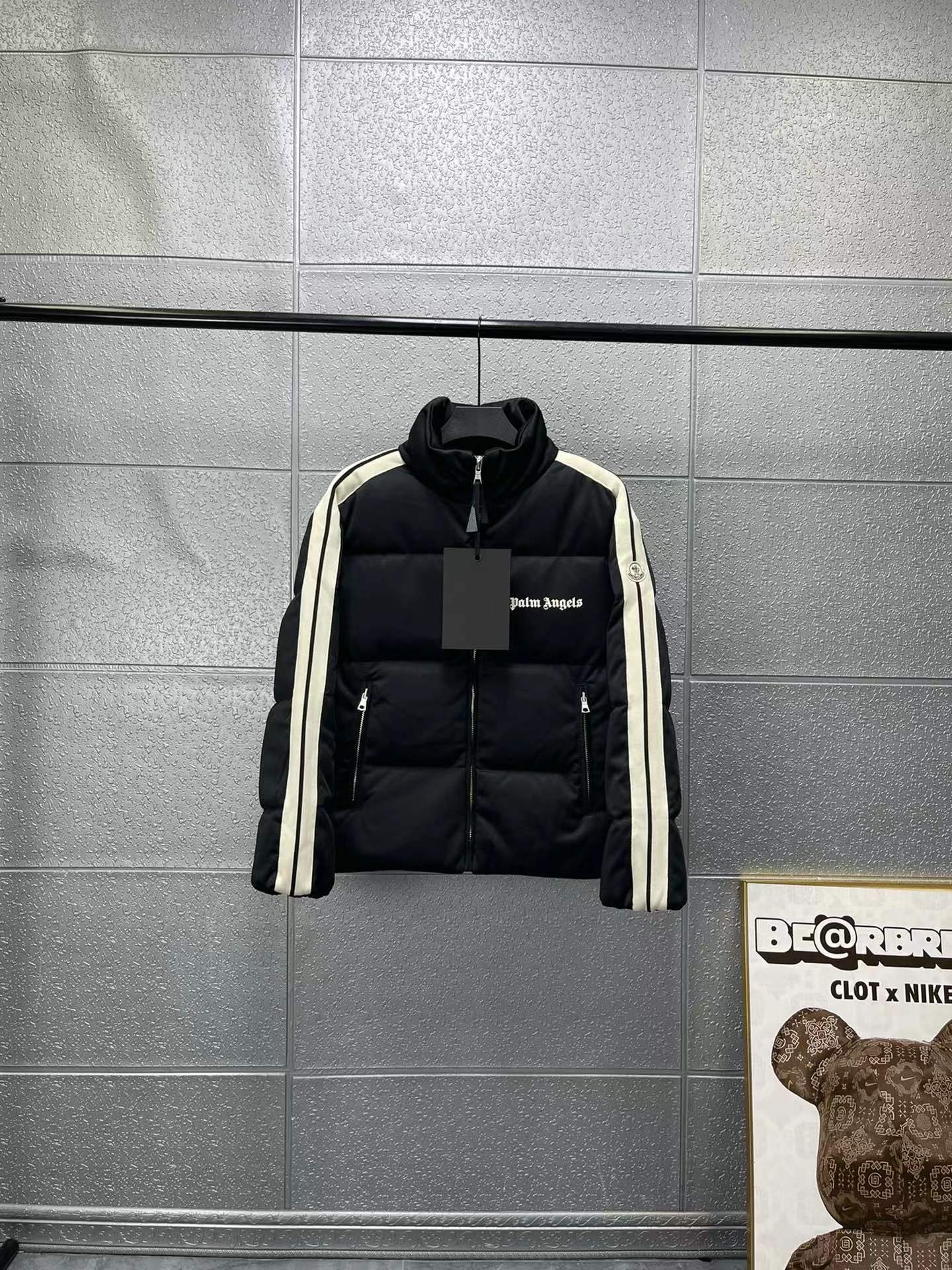 联名 徽标彩条刺绣logo羽绒服外套 。围绕古着店的理念,同时保持原有功能与简约主义,这一分的美式文化,纯色系的大身蓬松却毫无臃肿感,一拉而上的立领造型,胸口的字母成了主角,两侧袖子上米白色的宽镶边搭配中间的黑线条,充满了复古运动的校园风格,手臂上有一个标志性小徽标,联名系列显而易见,除了常规的黑色,分别带来了类似精典黑和孔雀绿的色调,减龄和出境都相当的引人瞩目。
