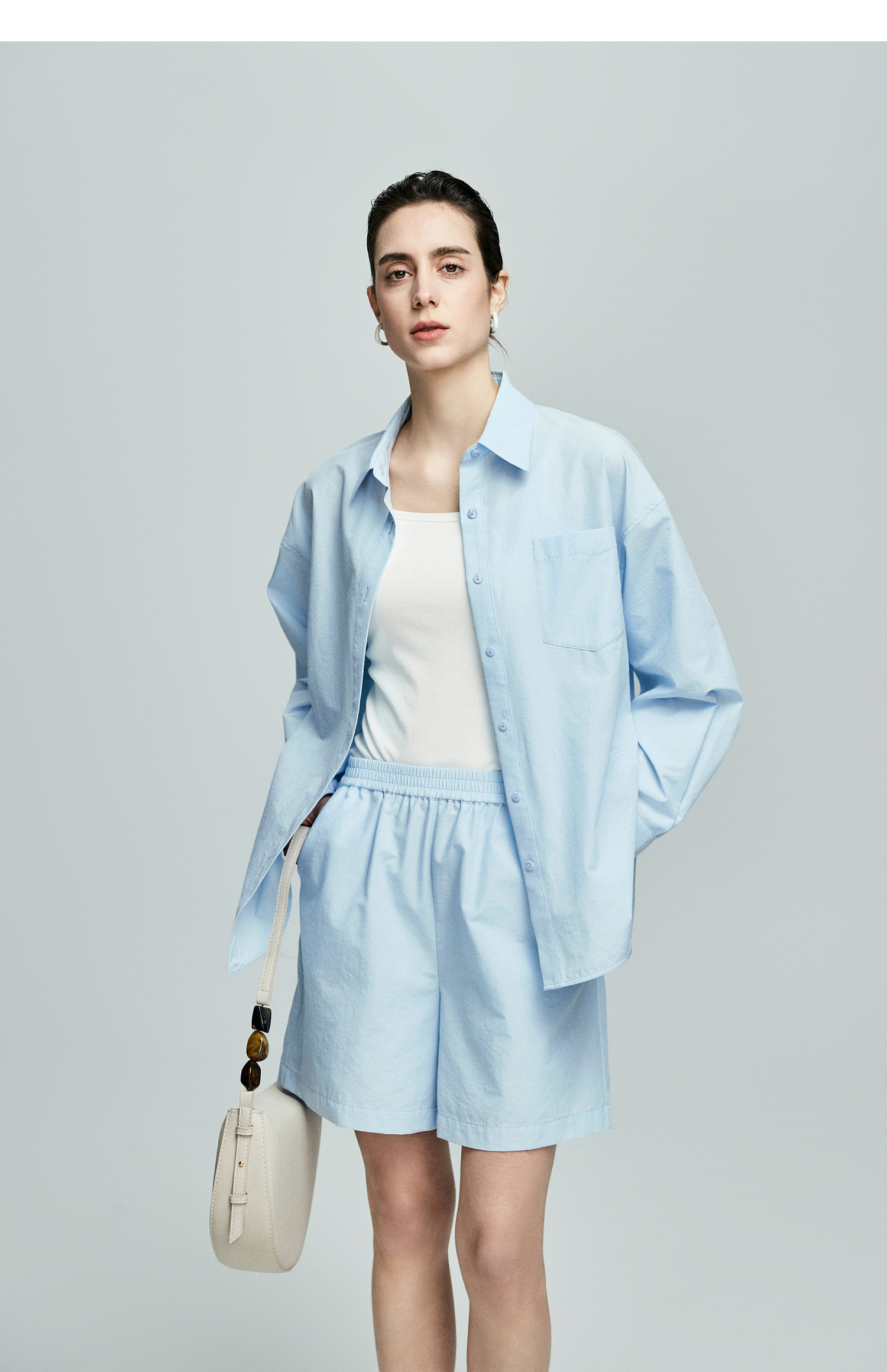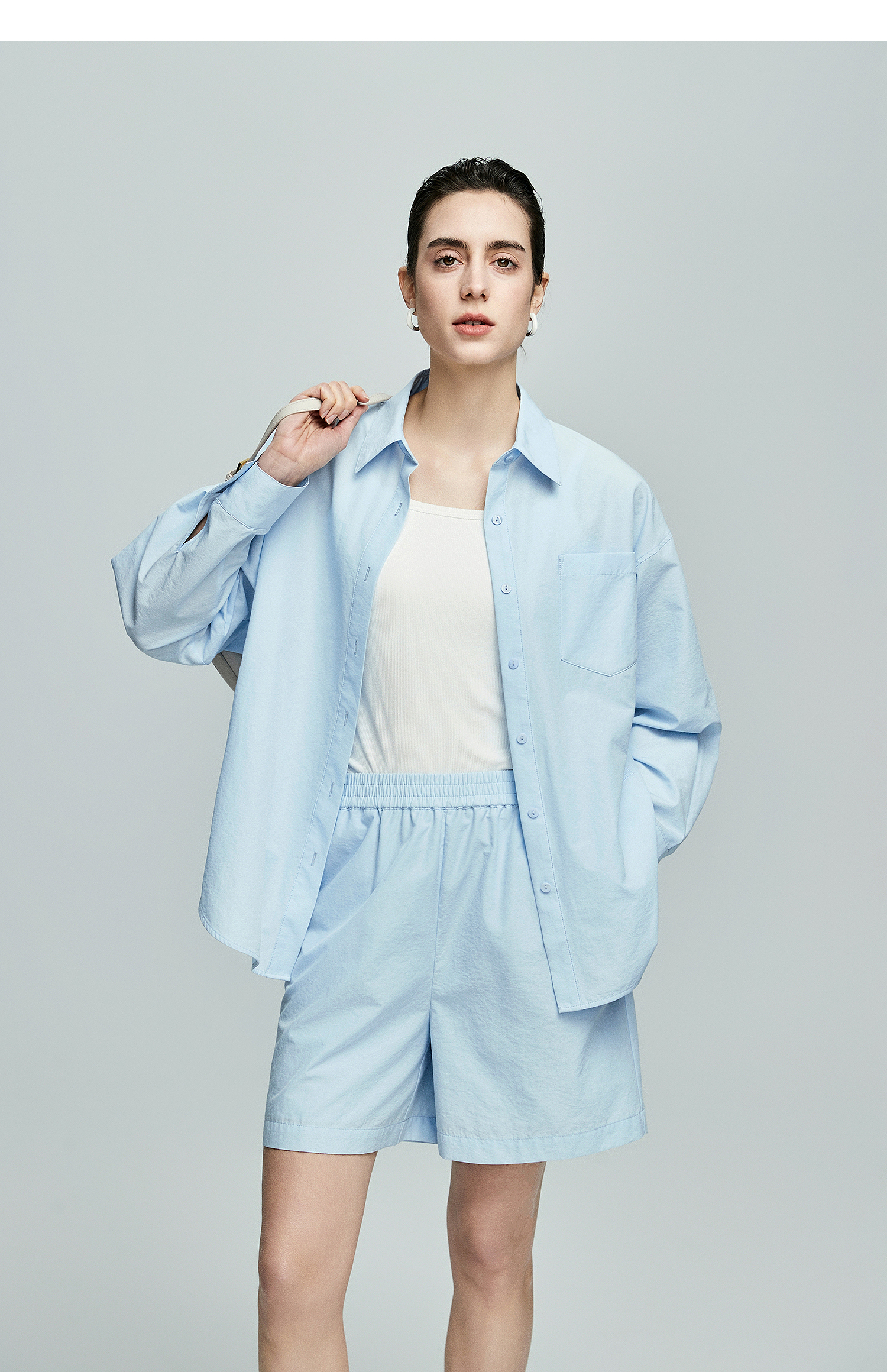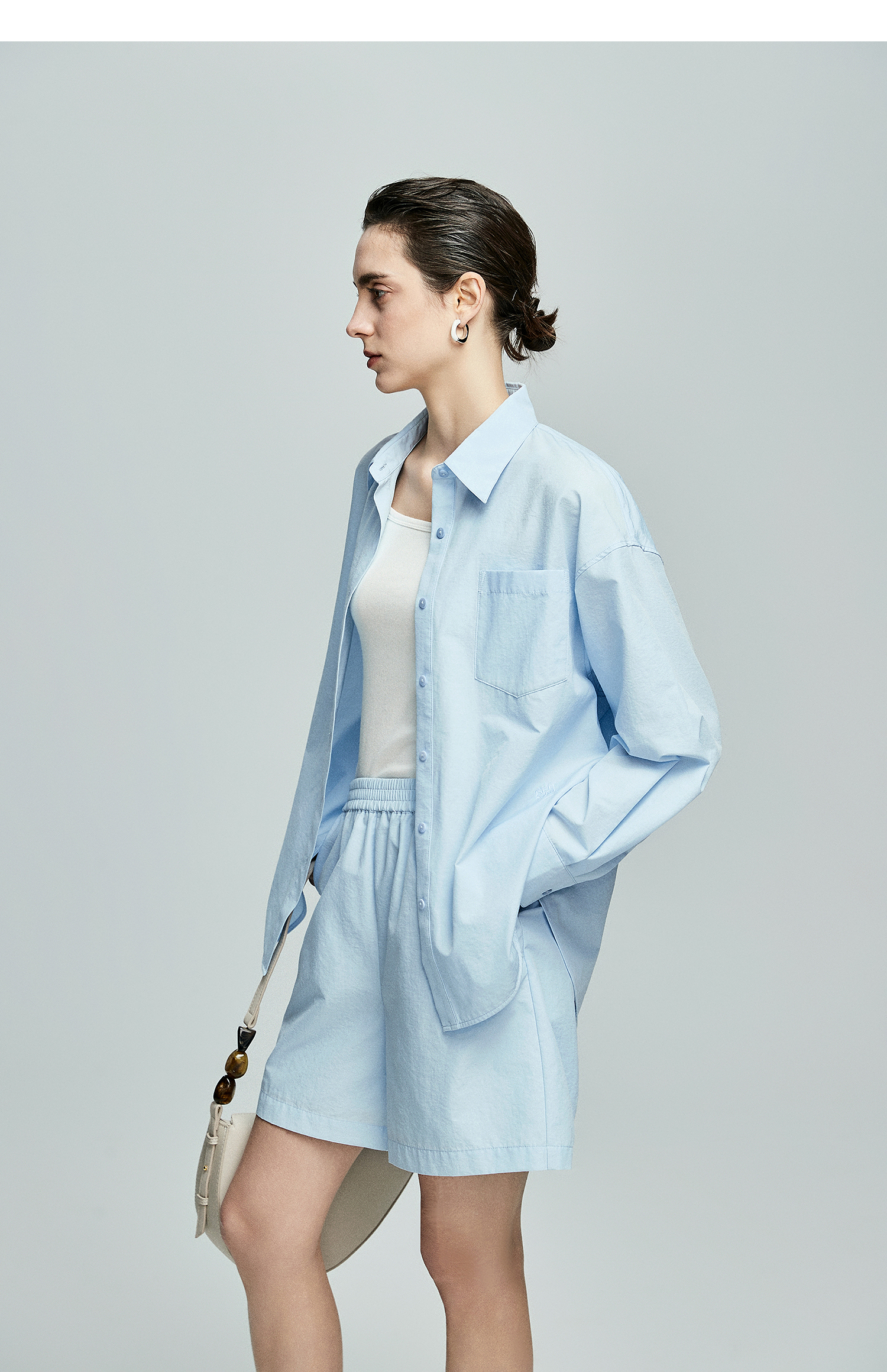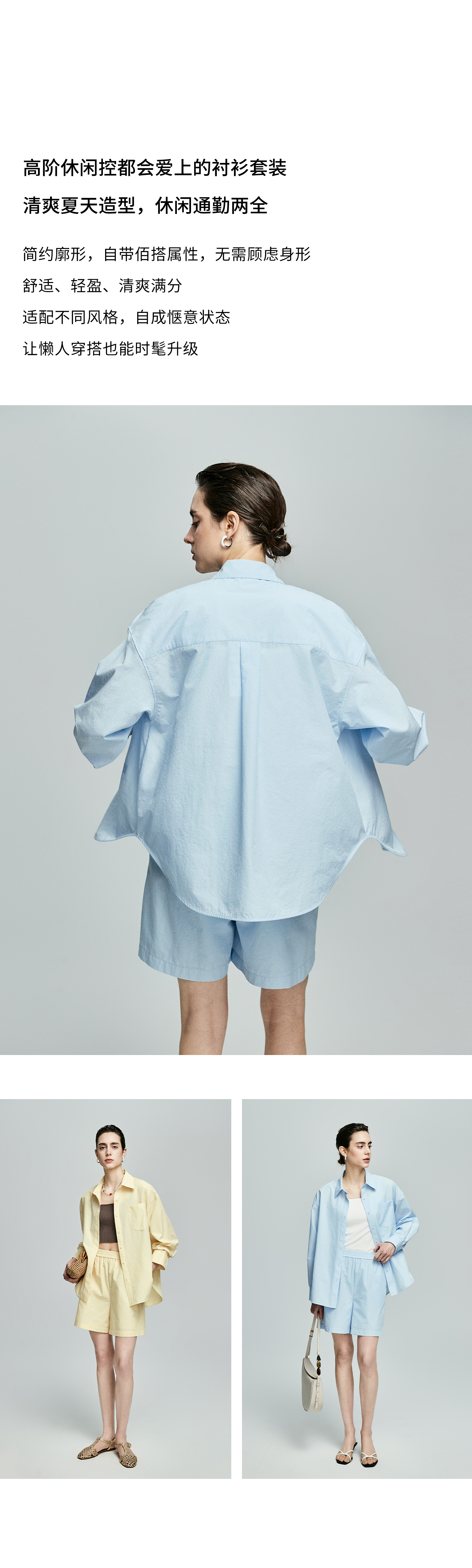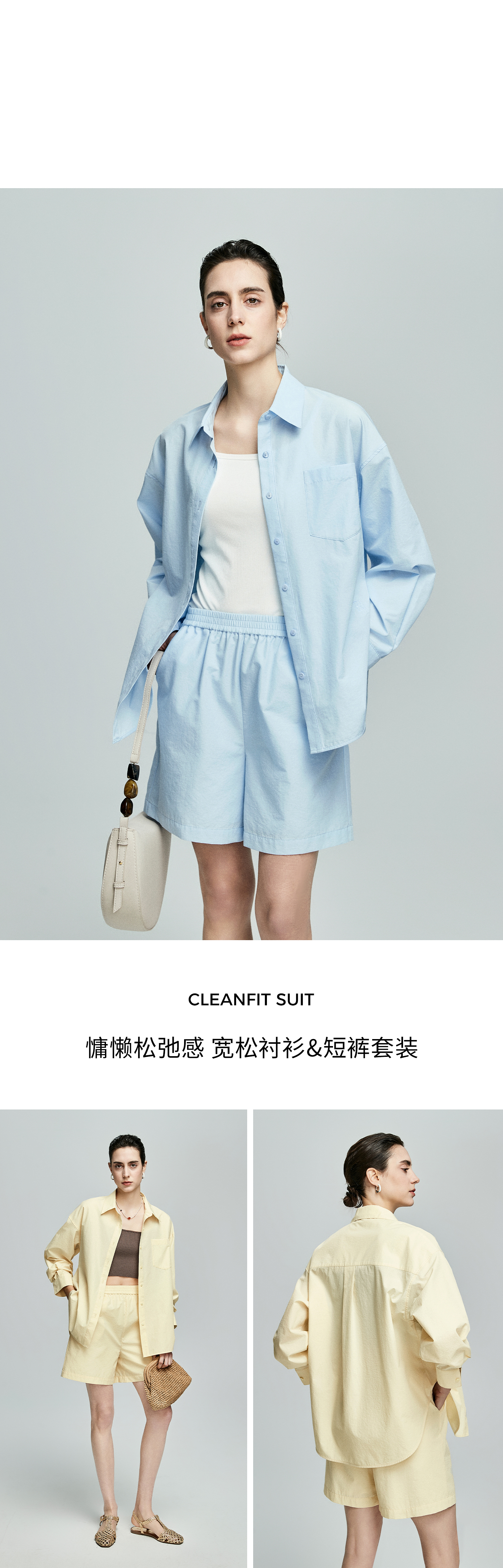 棉仓362685001-初棉慵懒风宽松衬衫+短裤套装