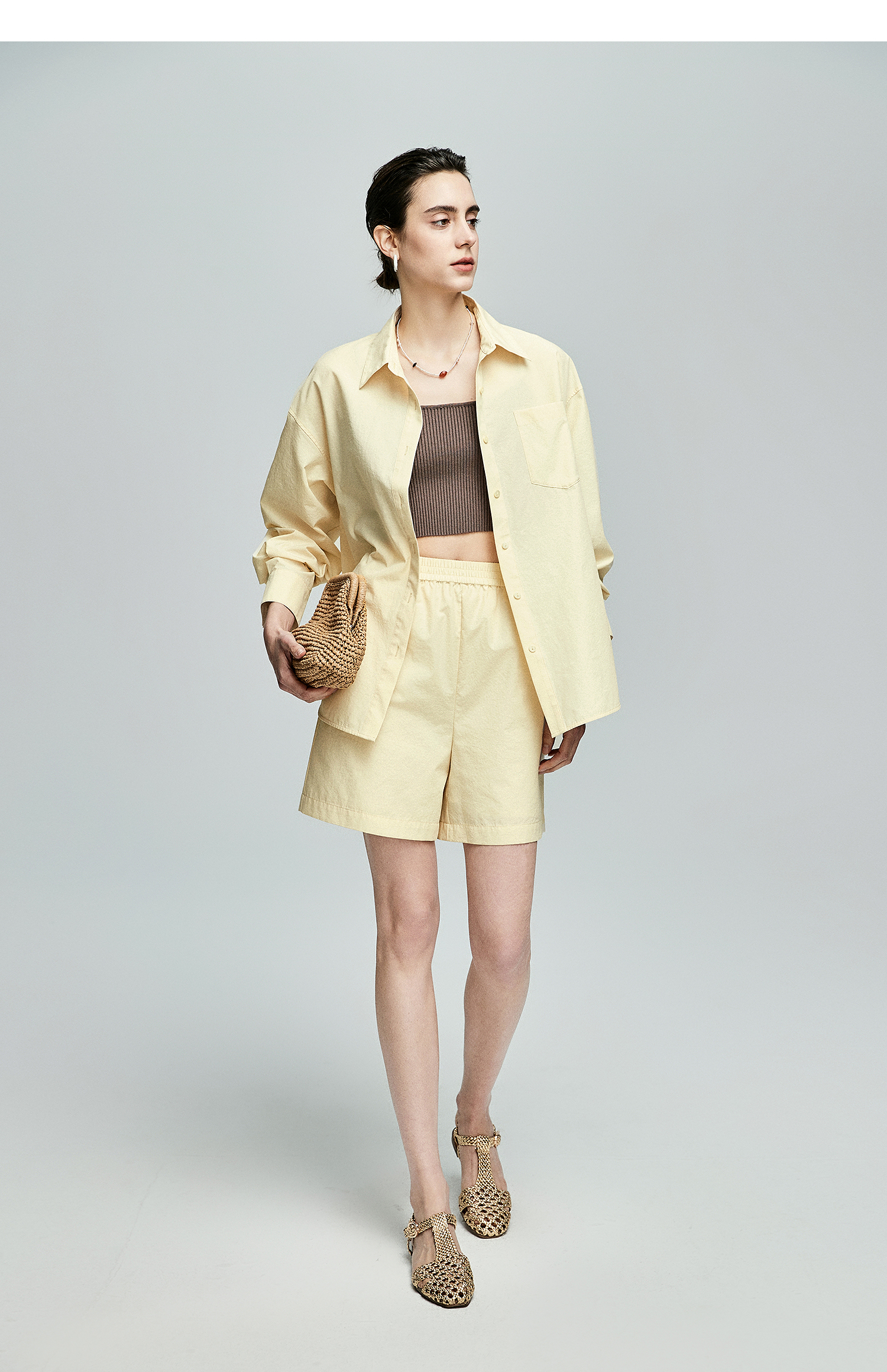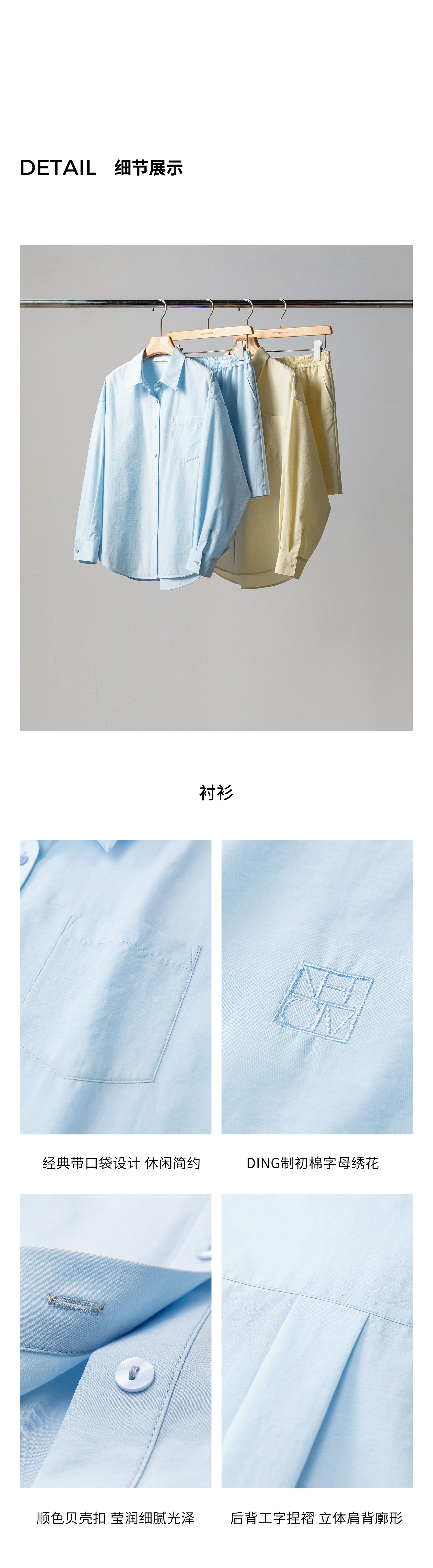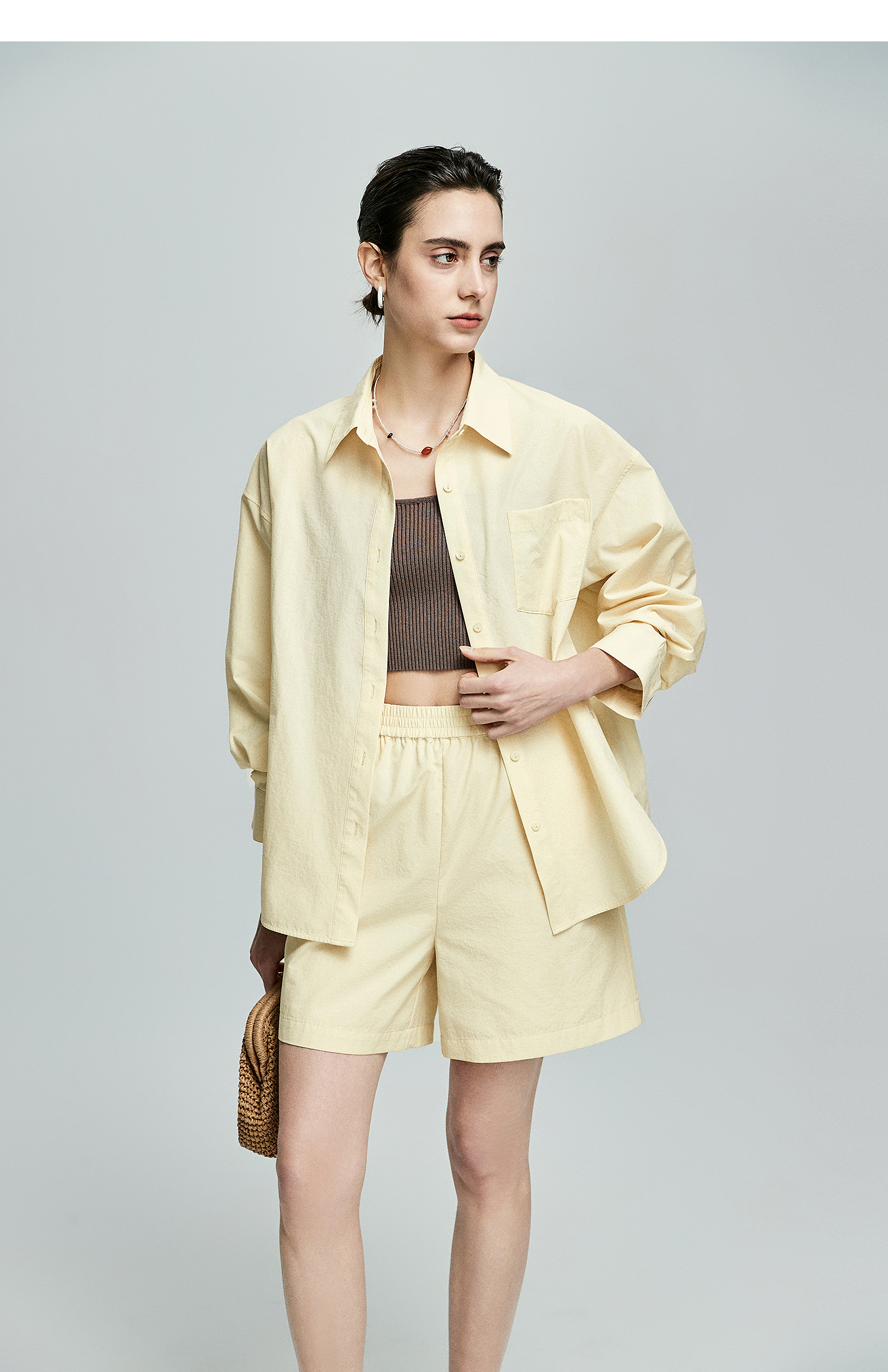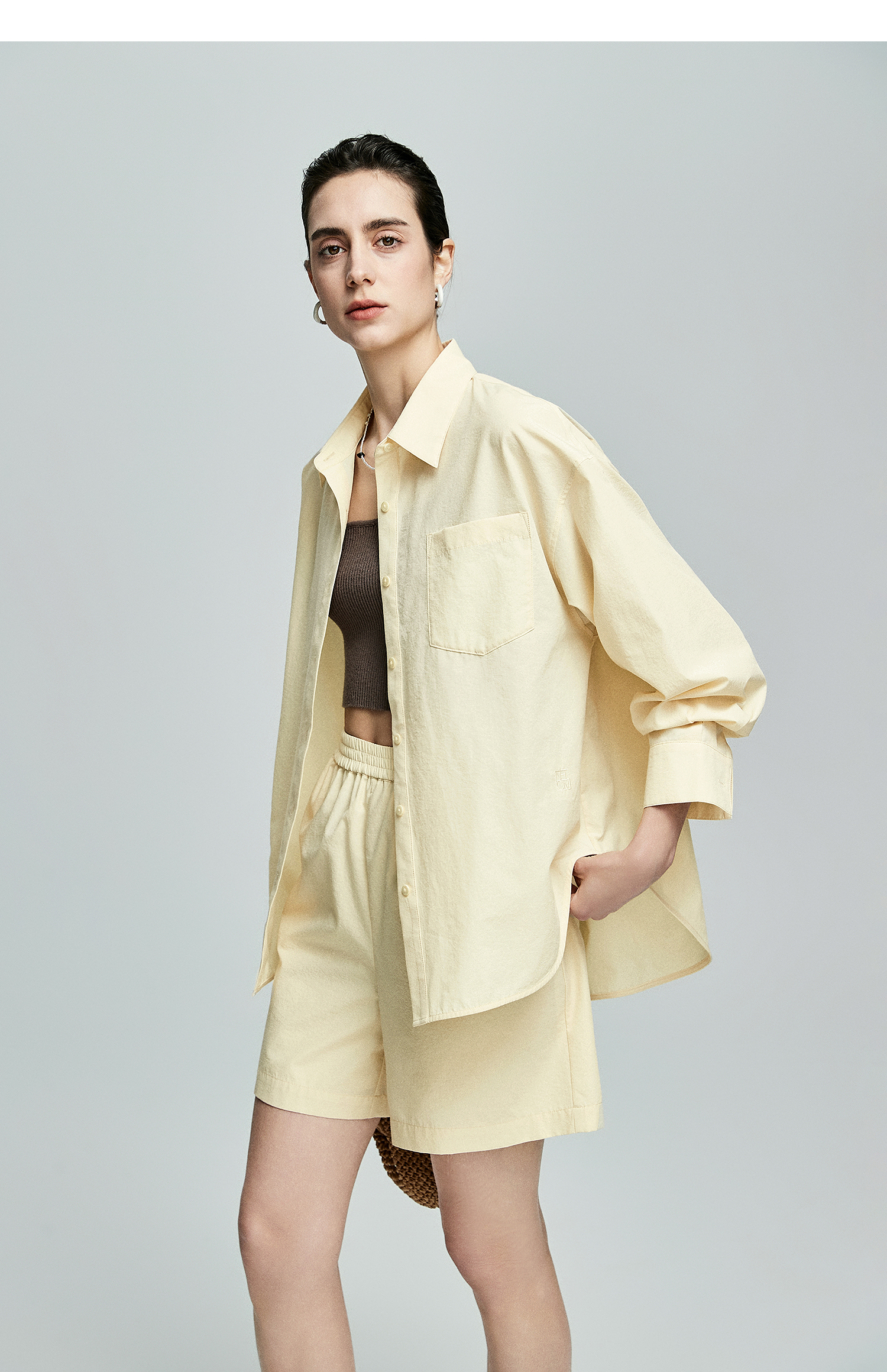 棉仓362685001-初棉慵懒风宽松衬衫+短裤套装