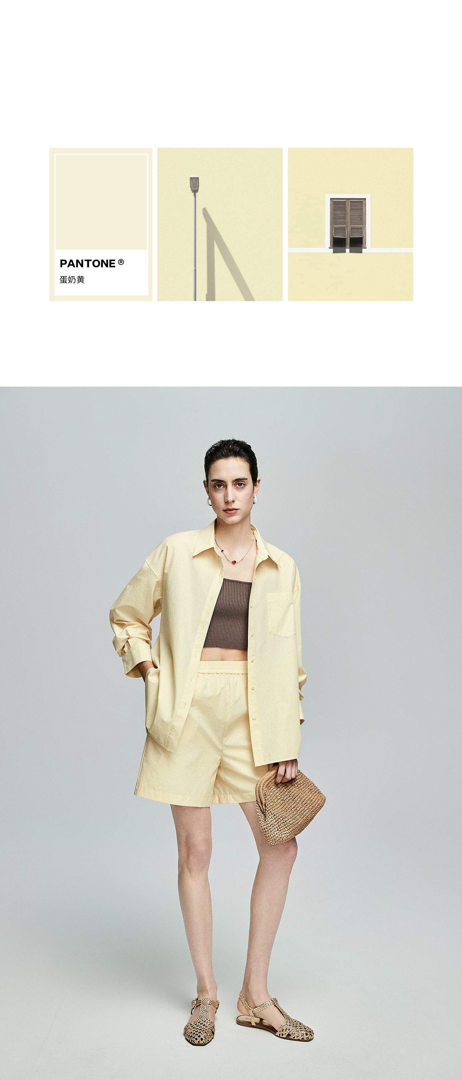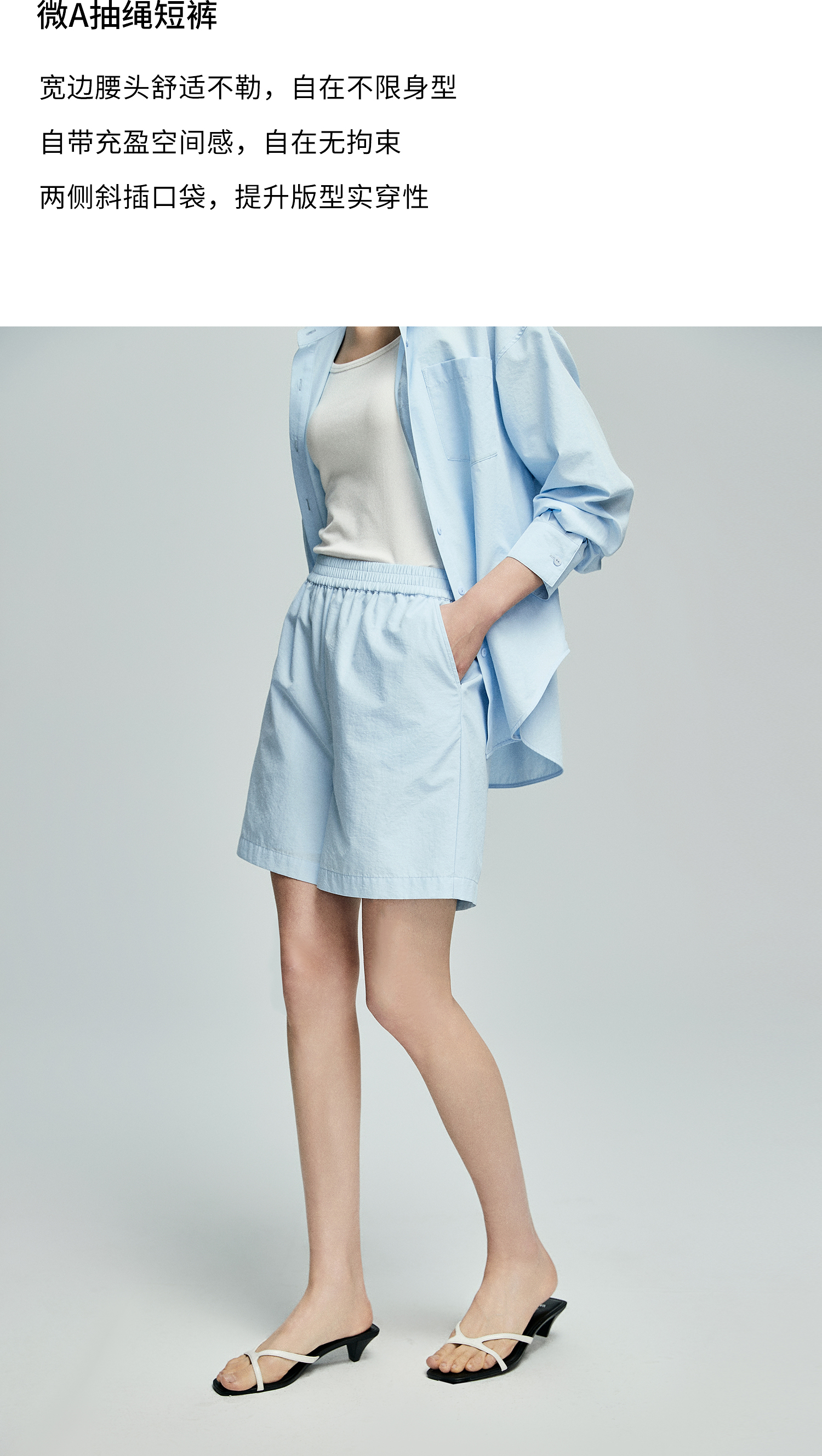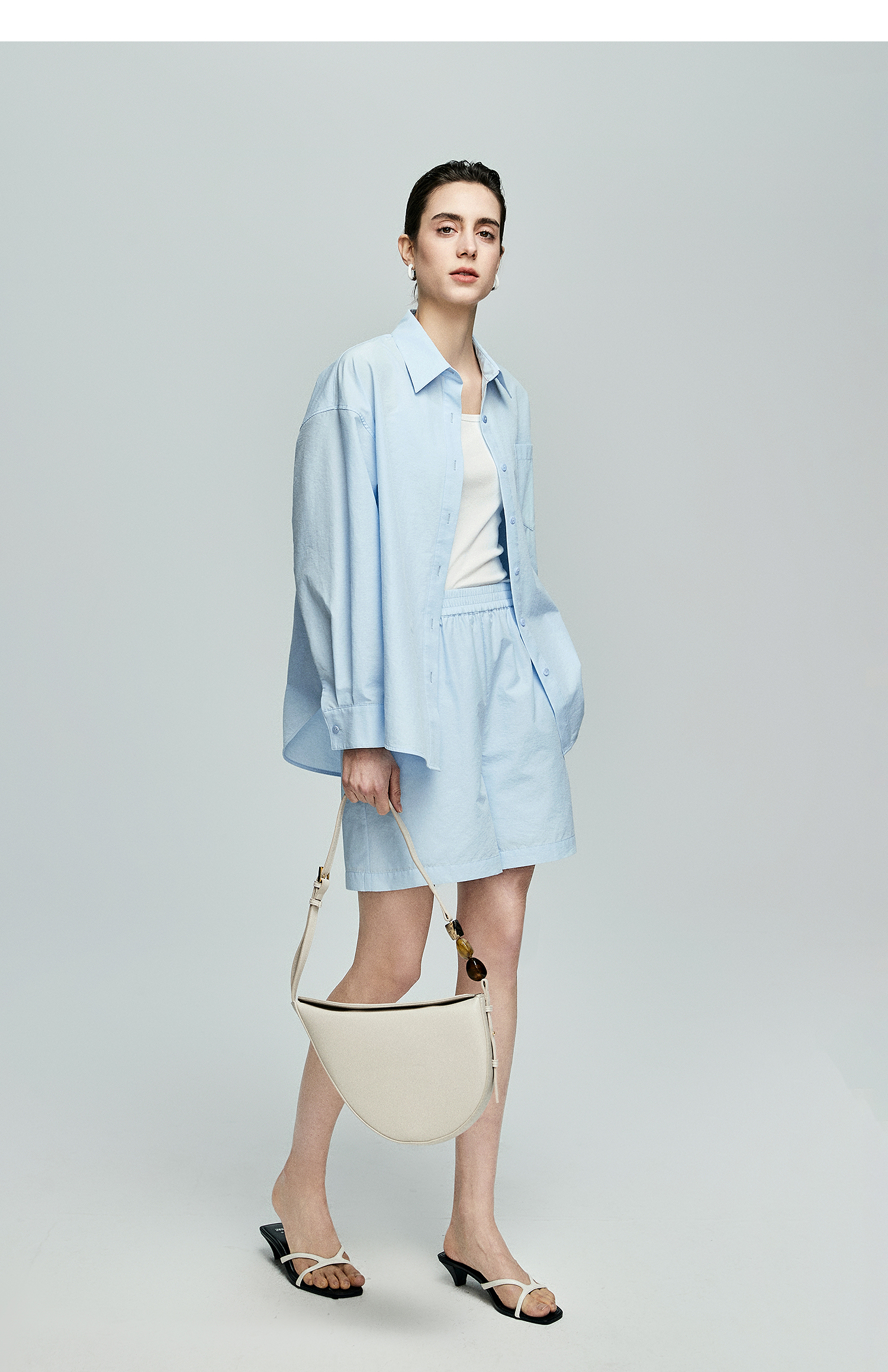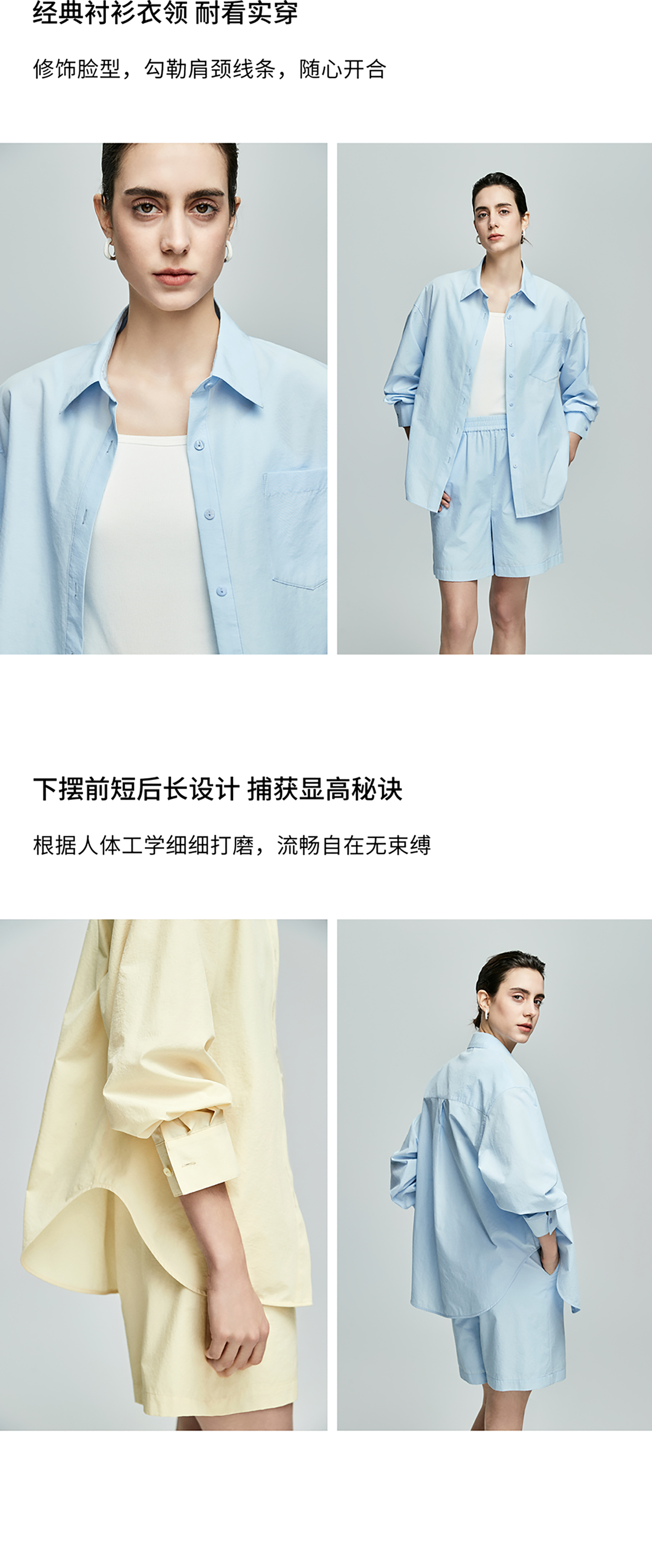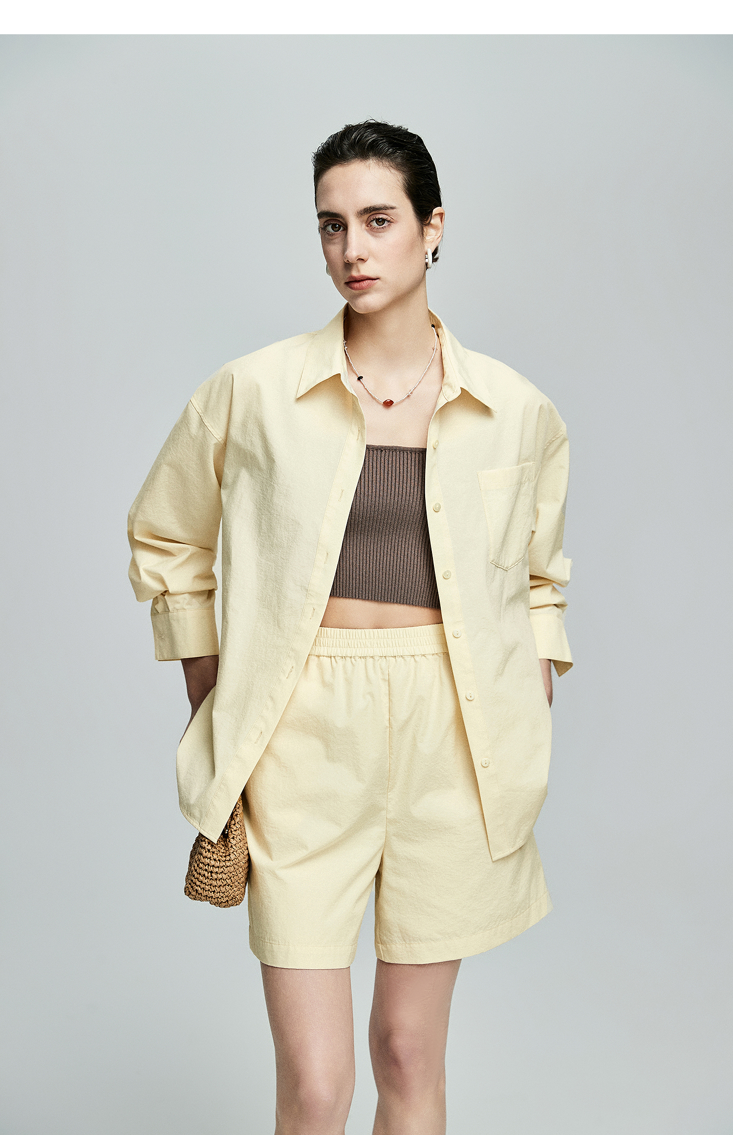 棉仓362685001-初棉慵懒风宽松衬衫+短裤套装