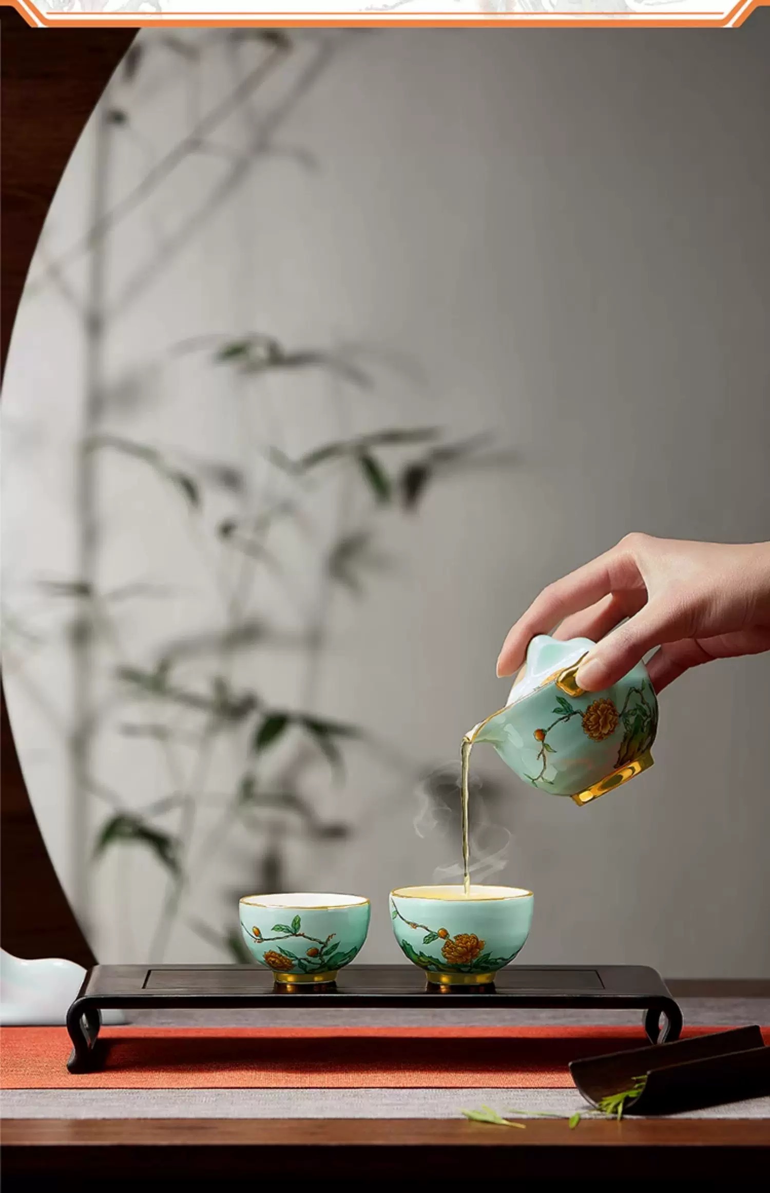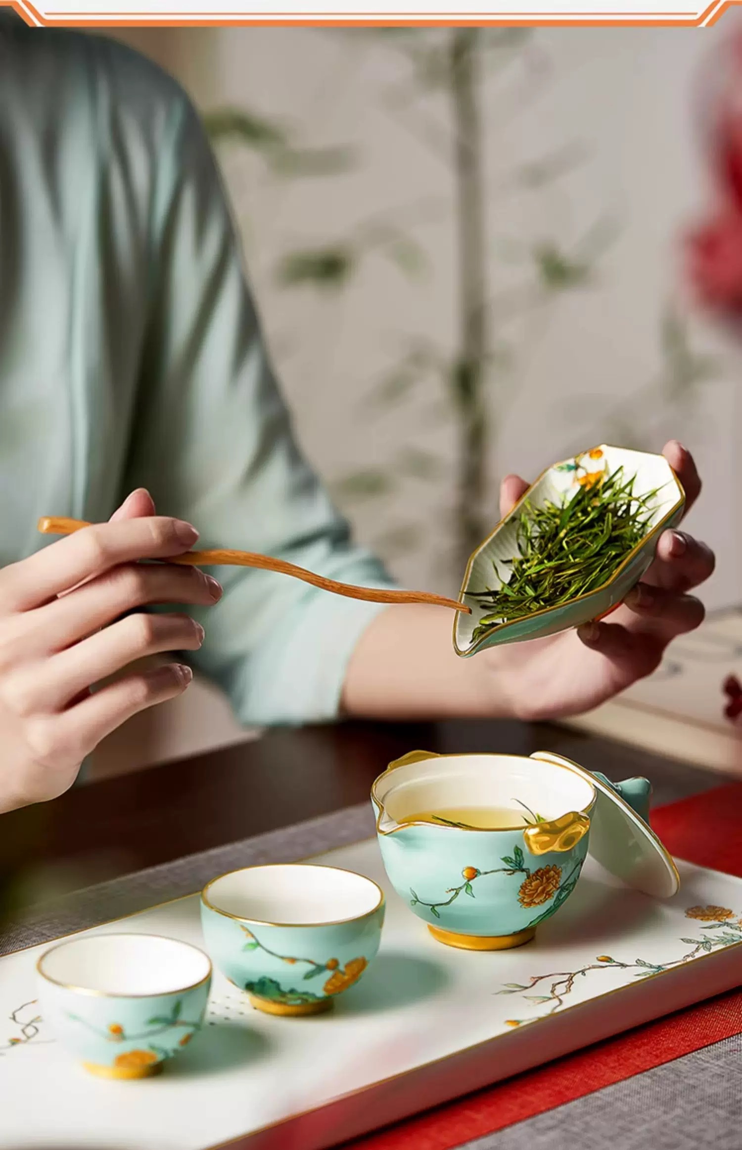 【6F】玛戈隆特玉堂富贵.大方无隅.4头行云山石茶具(莲子青)