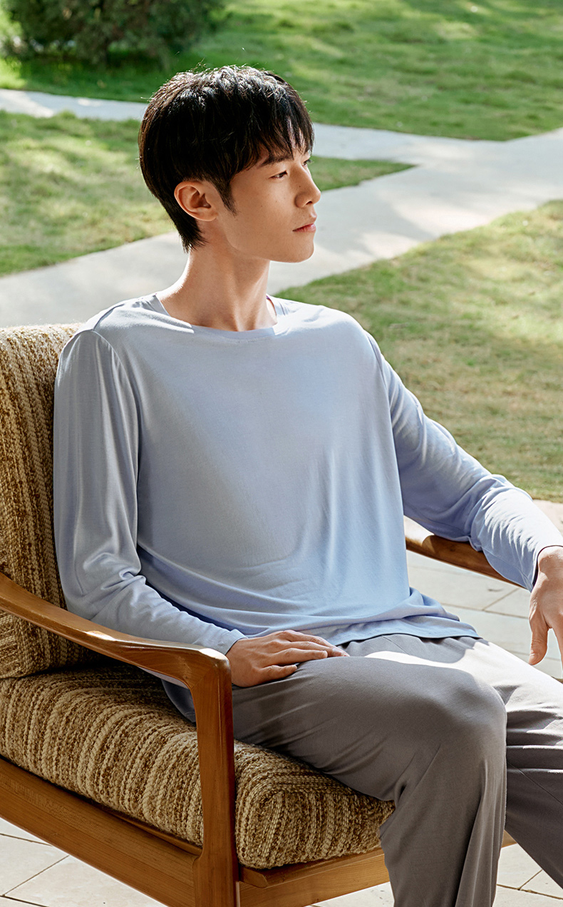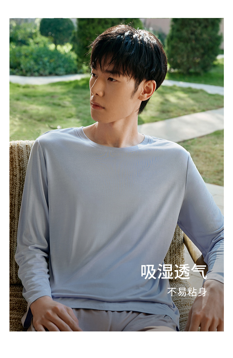 透气裸感】金三塔100%桑蚕丝真丝针织舒适打底男T恤纯色上衣新品 YZMFA701