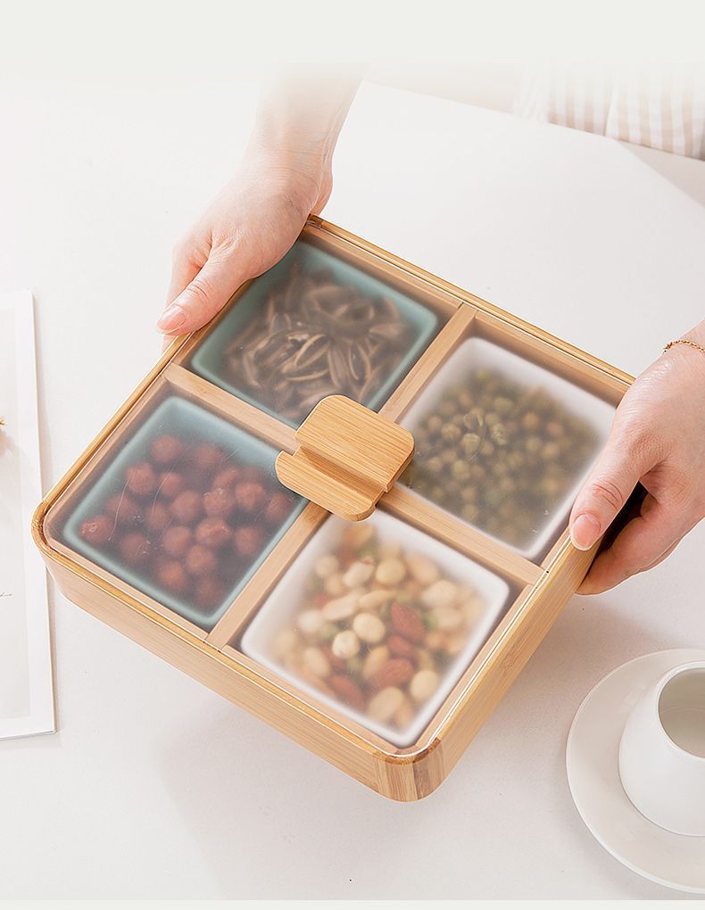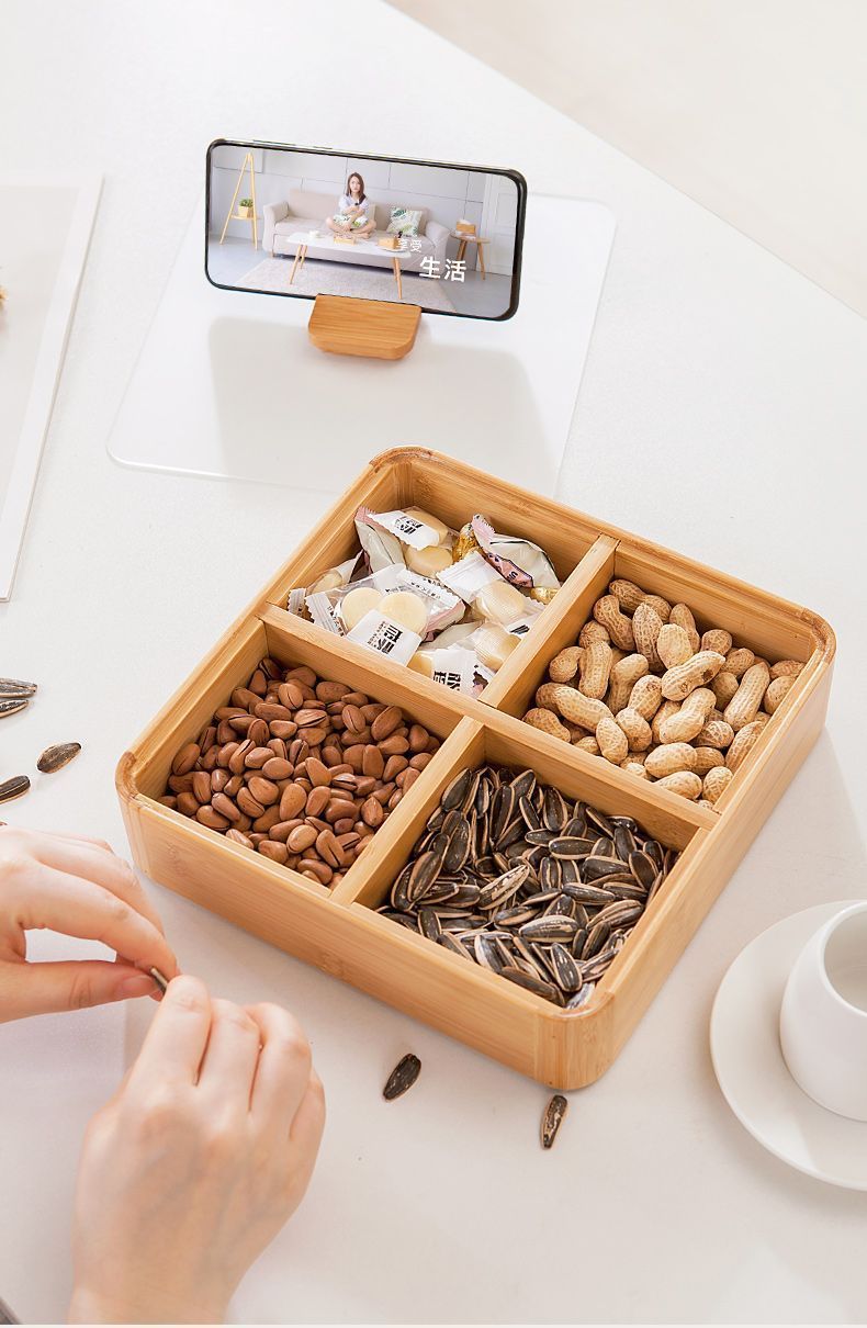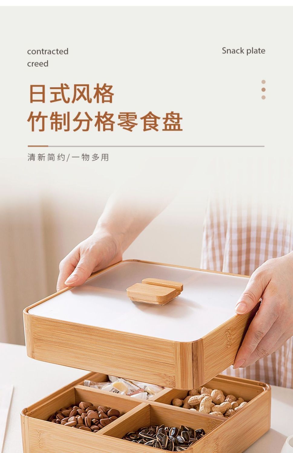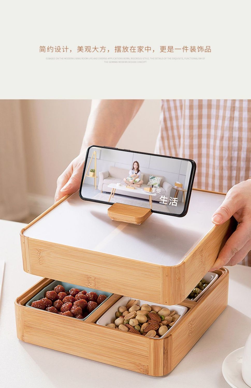 木制干果盒新中式家用创意分格带盖糖零食瓜子多层收纳盒防潮客厅