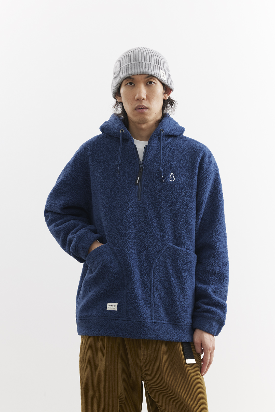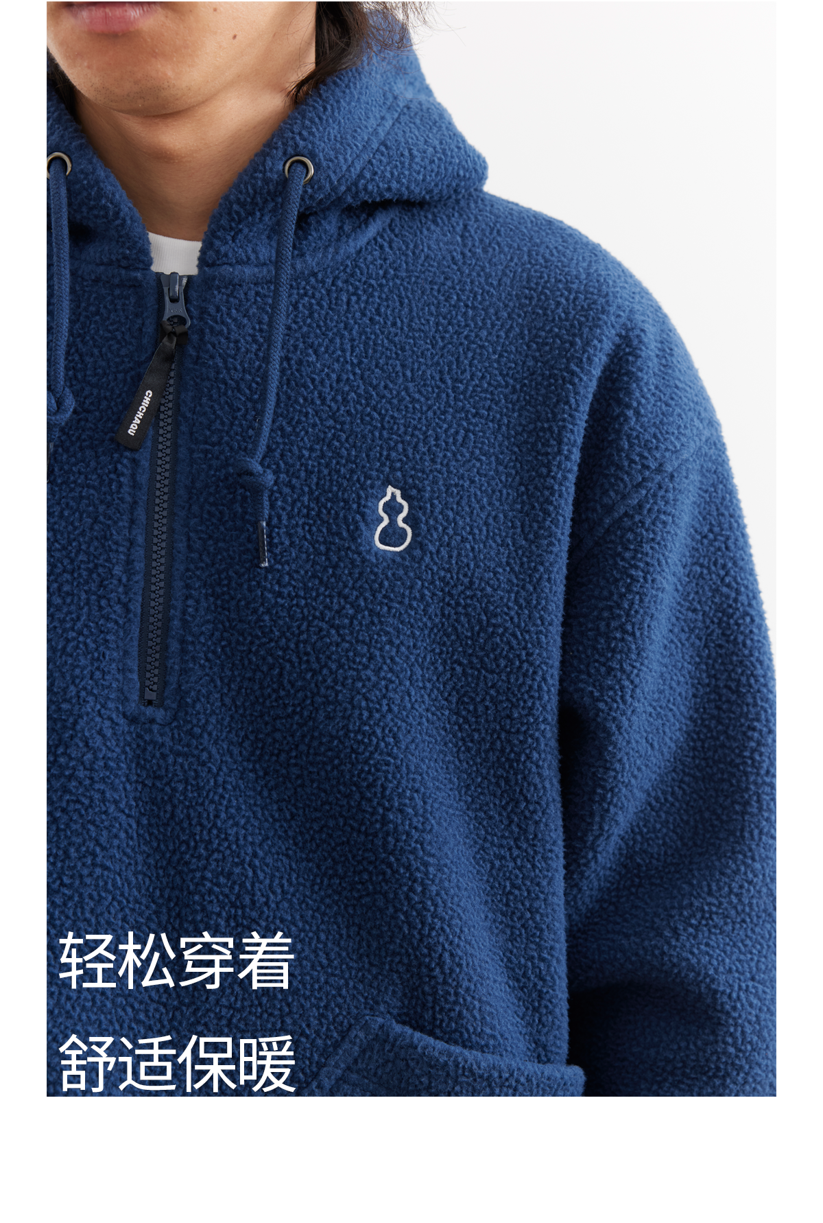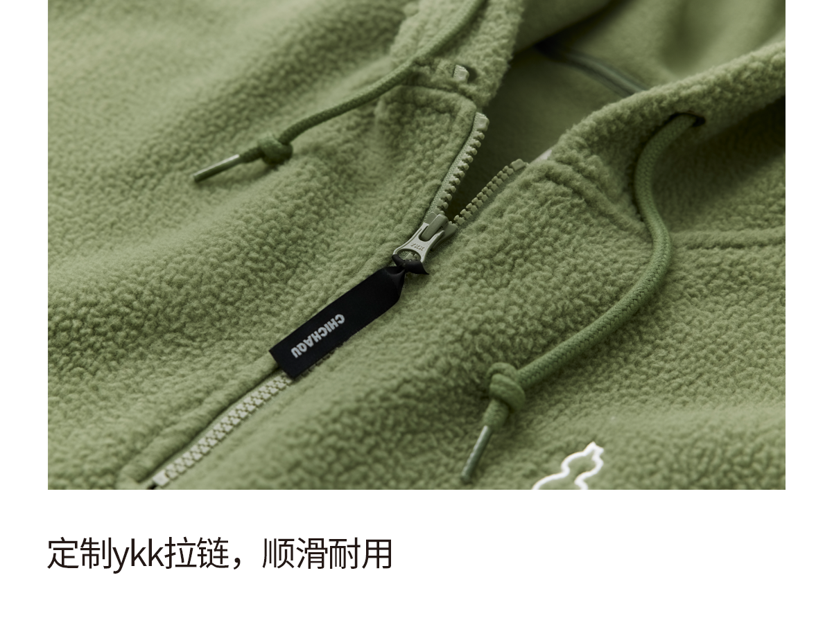吃茶去chichaqu25秋冬摇粒绒抓绒套头衫加厚保暖宽松拉链带帽卫衣