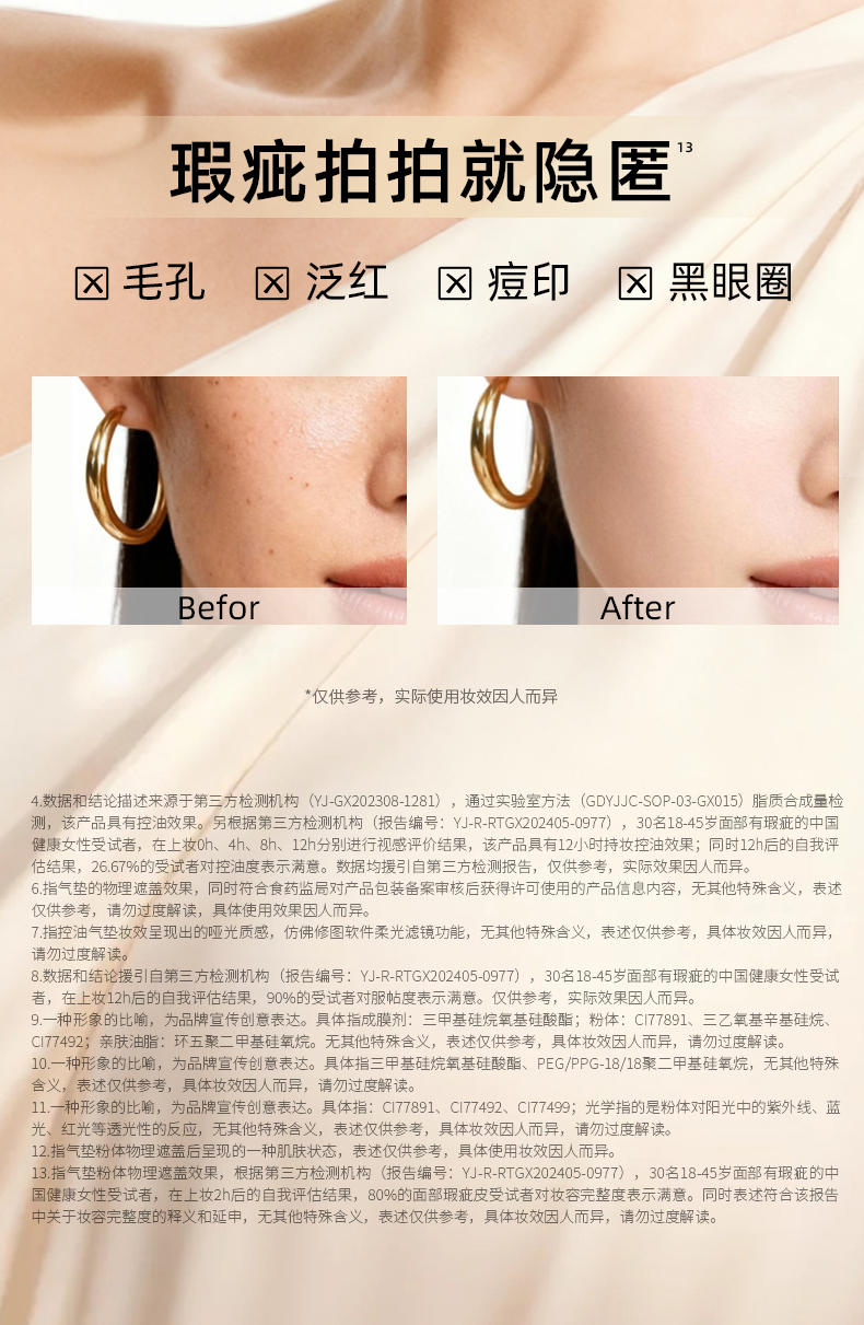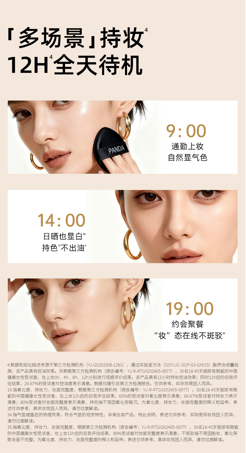 【买1送1替换芯】潘达气垫bb霜18g混干皮油皮美容修饰保湿