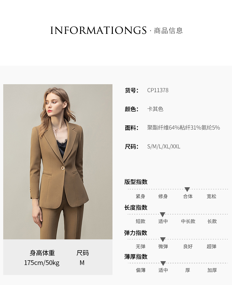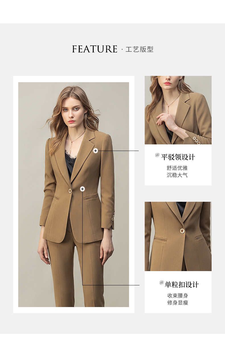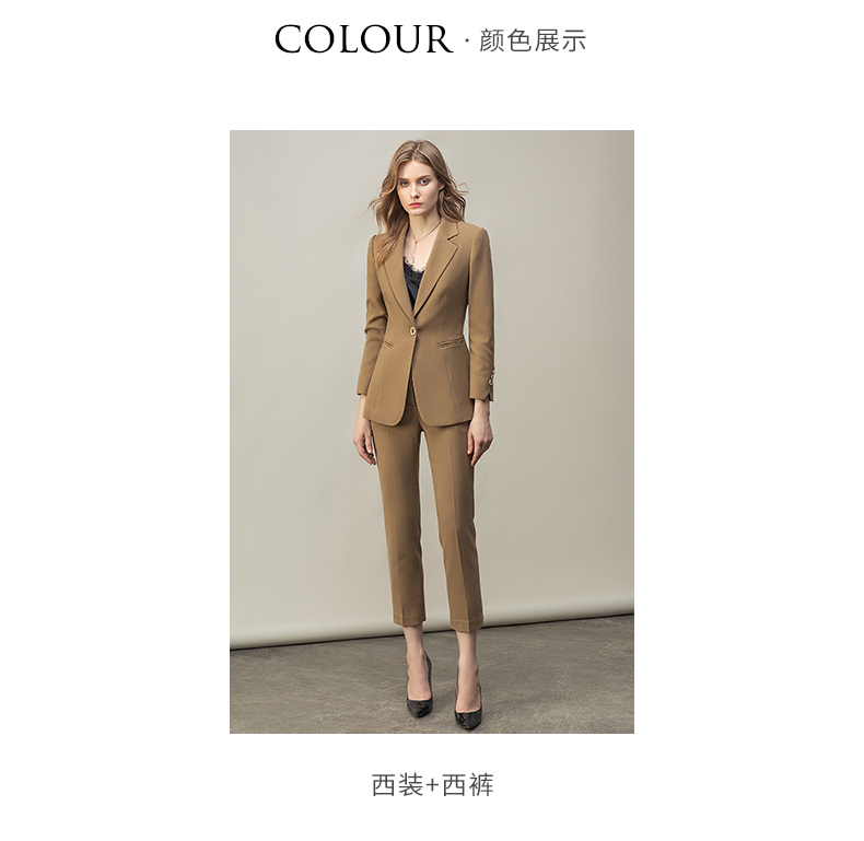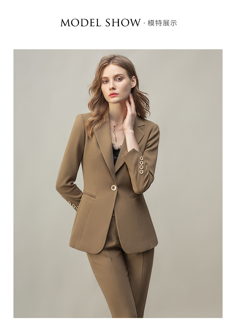 高端卡其色西装女早秋时尚长袖职业西服套装时尚气质经理工作服