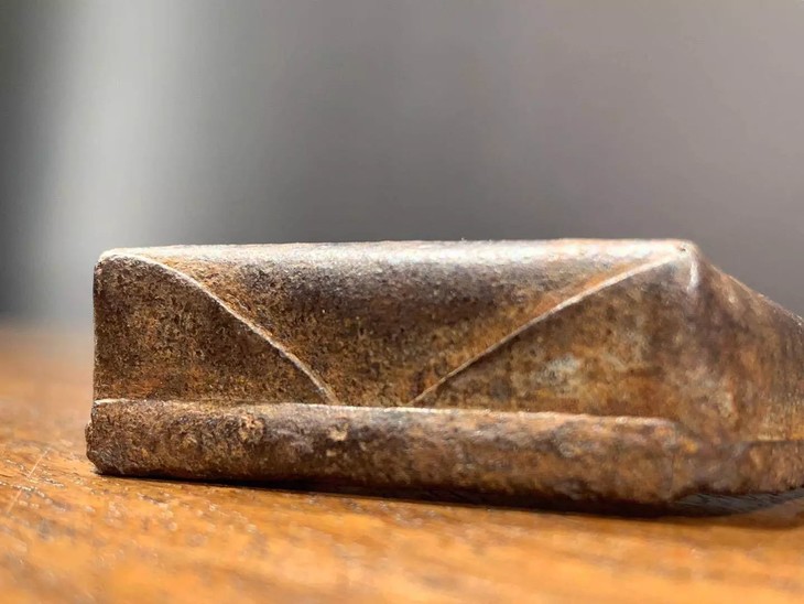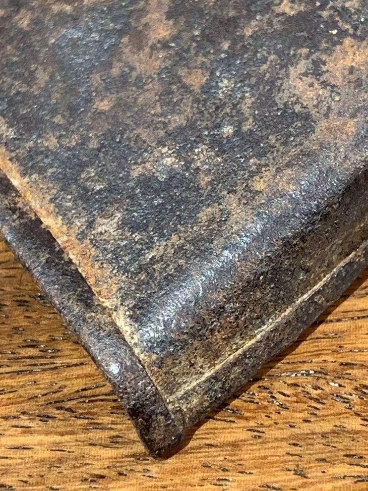 此畚箕型铁制香铲表面附着多年累积的铁锈斑、老铁器锈斑与溫润包浆皮壳融为一体,全器除口沿小磕碰与器表磨痕外,保存完好无损。