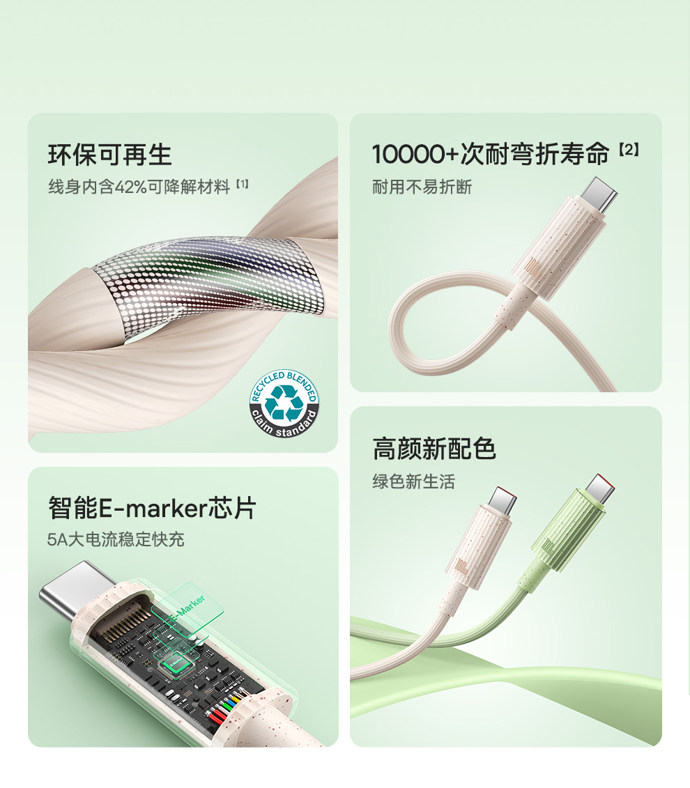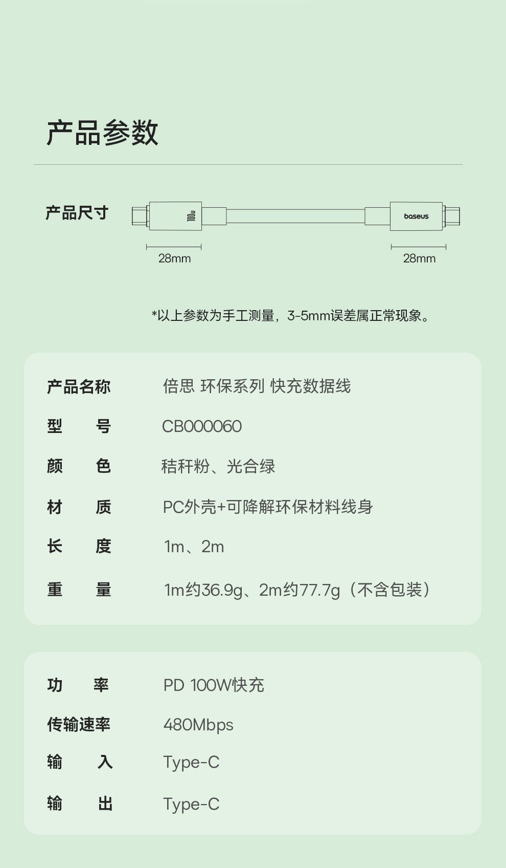 倍思 环保系列 快充数据线100W Type-C to Type-C/USB to Type-C