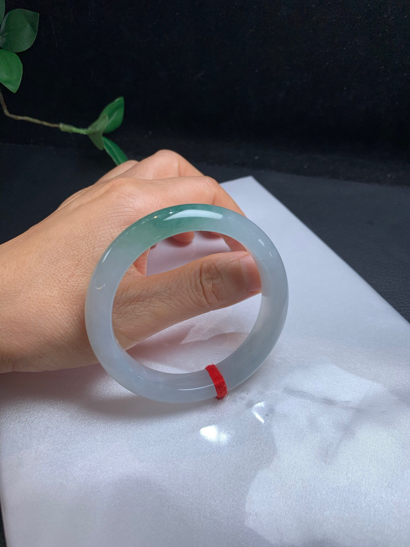 620458,54.8 冰底飘绿手镯,冰冰的,底妆冰透干净,一截带底色,干净清爽,完美 内圈有个小沙眼 完全不影响佩戴 ,超值价💰24800 #优石客珠宝#香玉荟萃