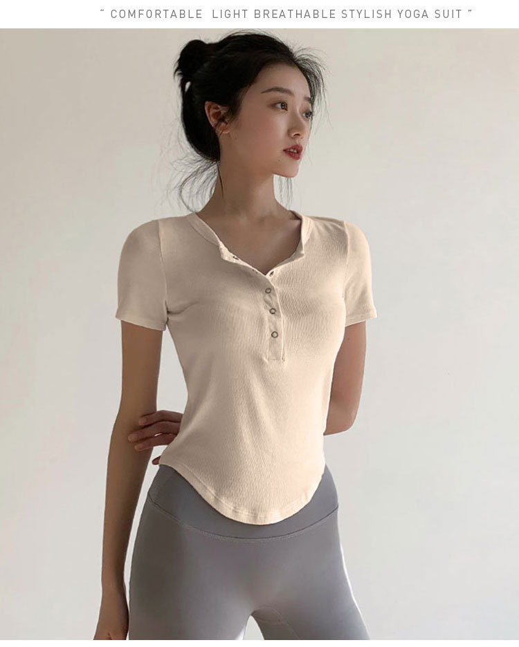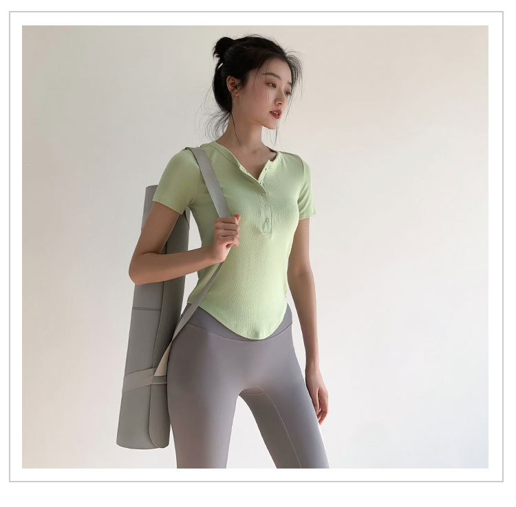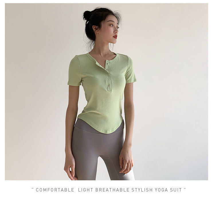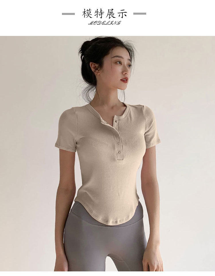 瑜伽服上衣女夏季薄款时尚圆领健身短袖宽松显瘦速干跑步运动t恤JM 000 DX23-931
