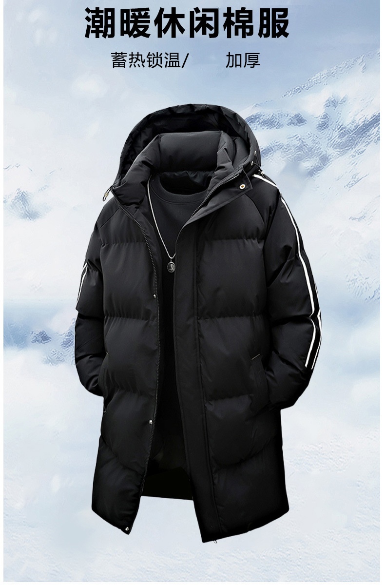 开衫中长款连帽棉衣男潮牌时尚加厚宽松休闲男装冬装棉服外套