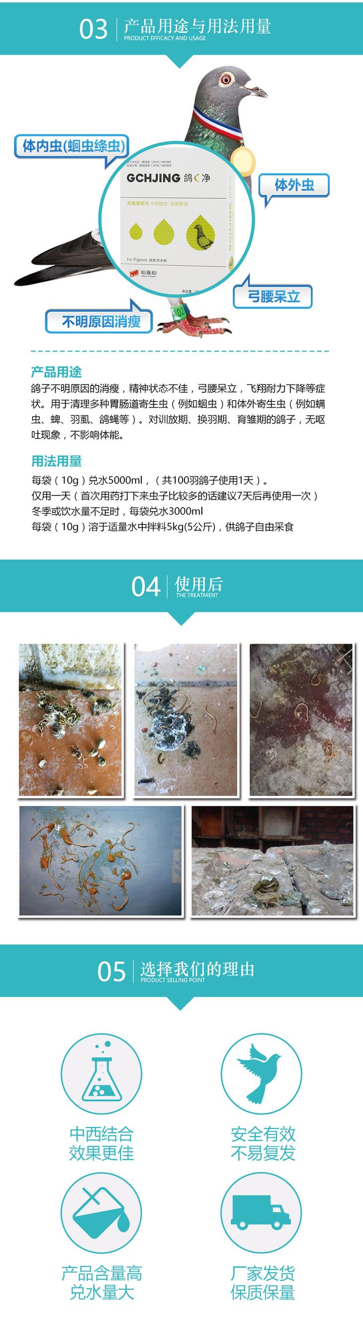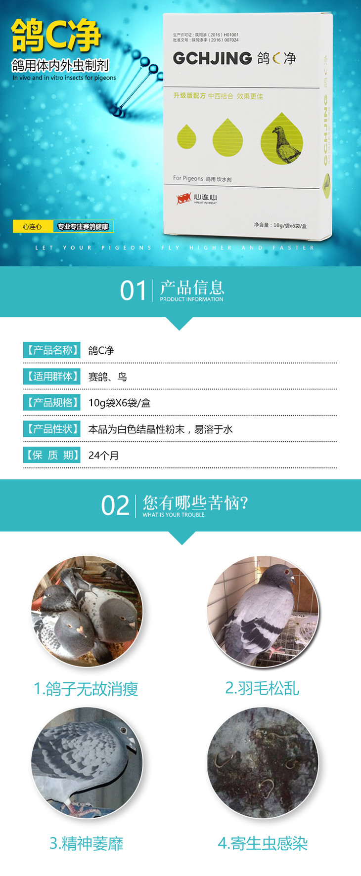 【新鸽C净】粉10g*6袋,体内虫(心连心)