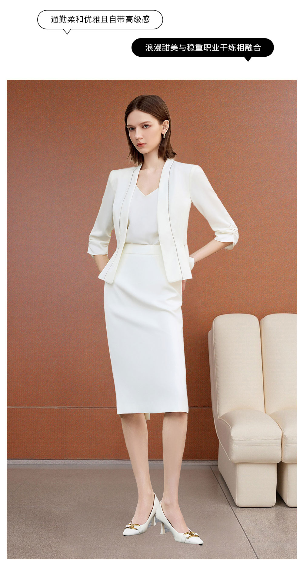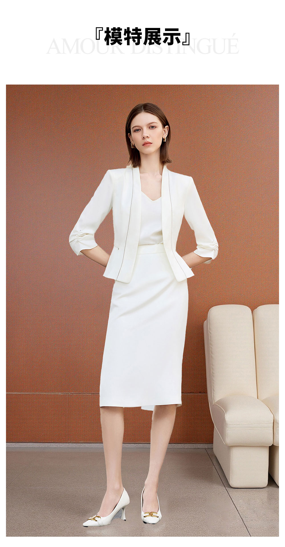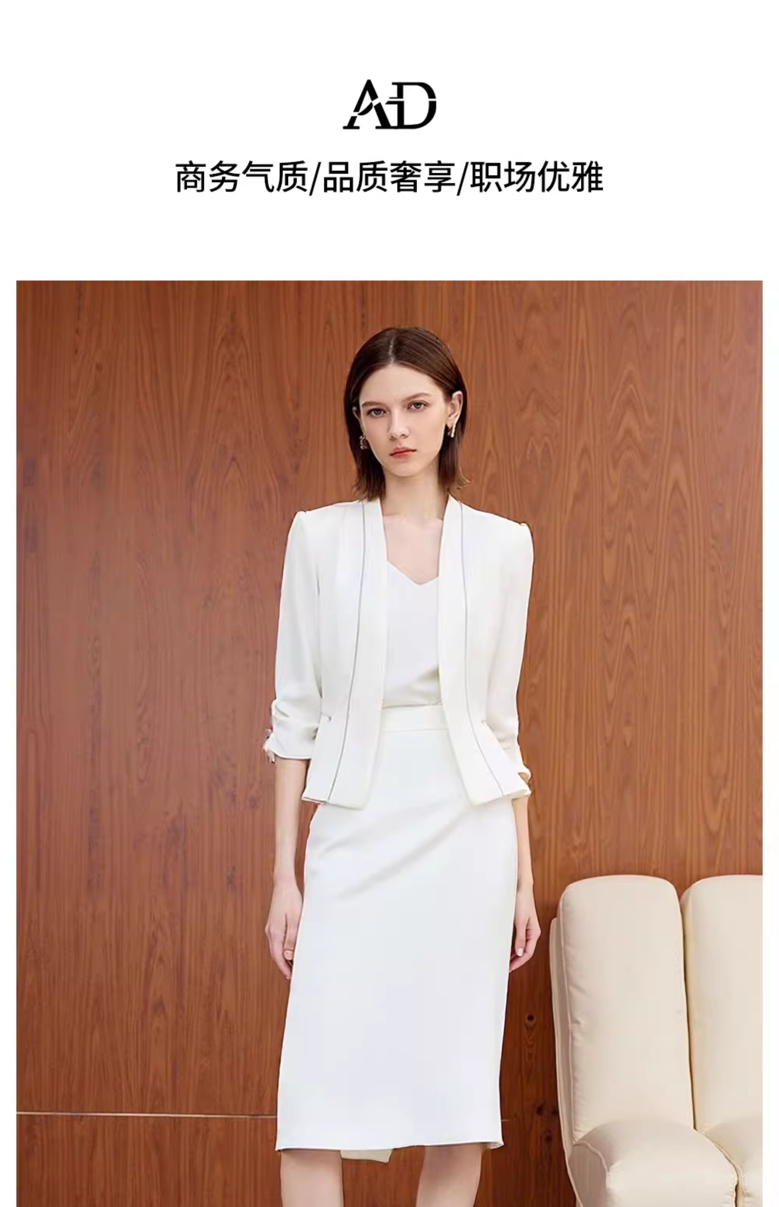 AD秋季抽褶七分袖西装套装女神范气质职业装2025新款白色两件套裙