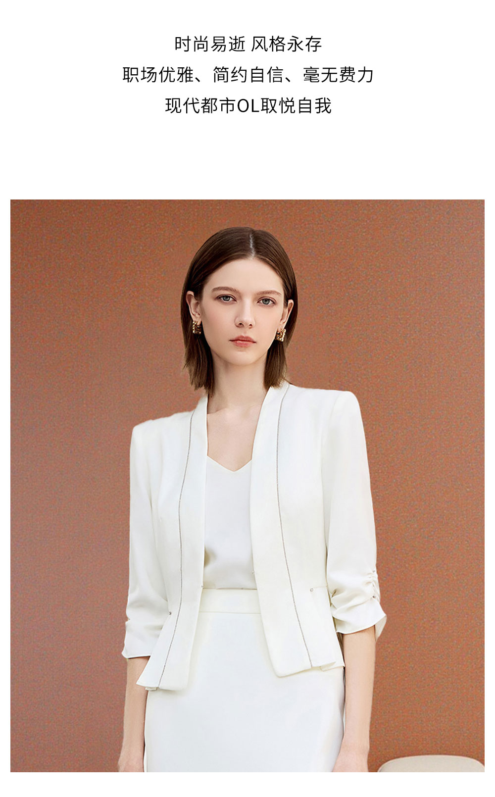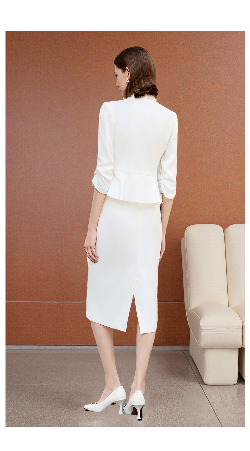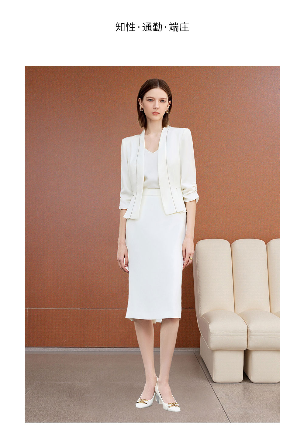 AD秋季抽褶七分袖西装套装女神范气质职业装2025新款白色两件套裙