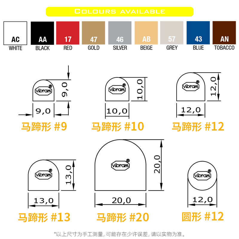 意大利进口Vibram马蹄形圆形布纹高跟鞋橡胶鞋钉跟