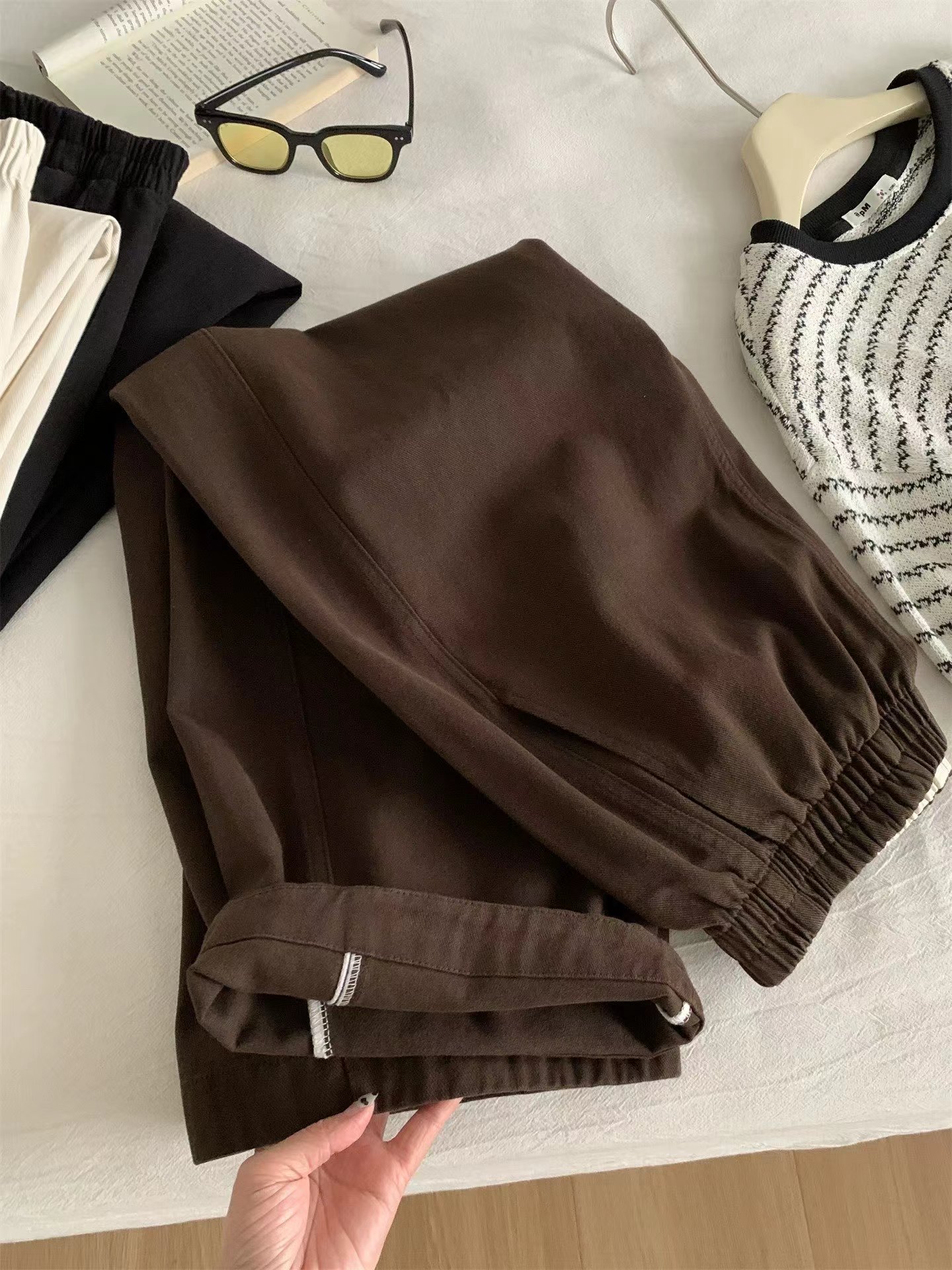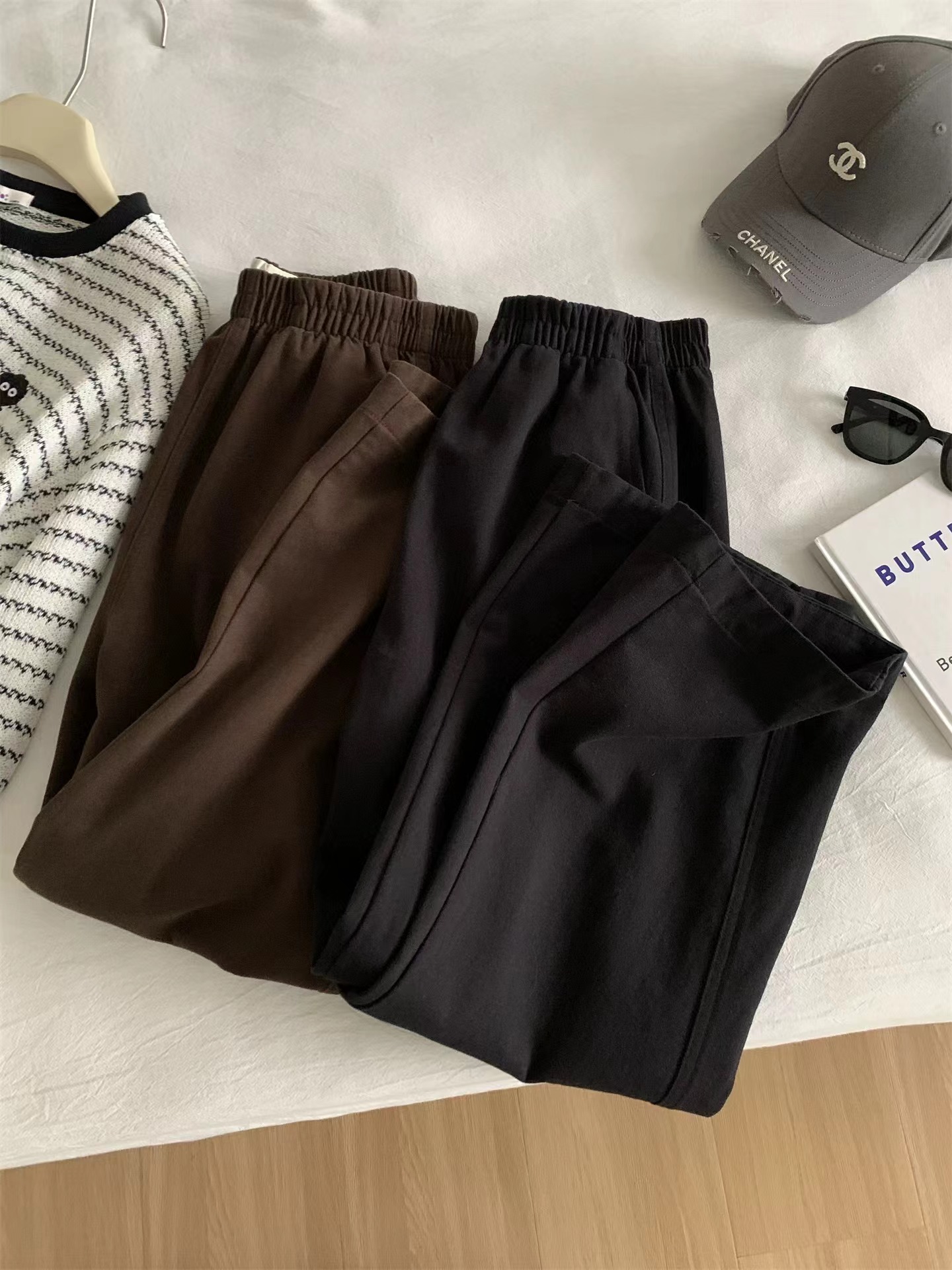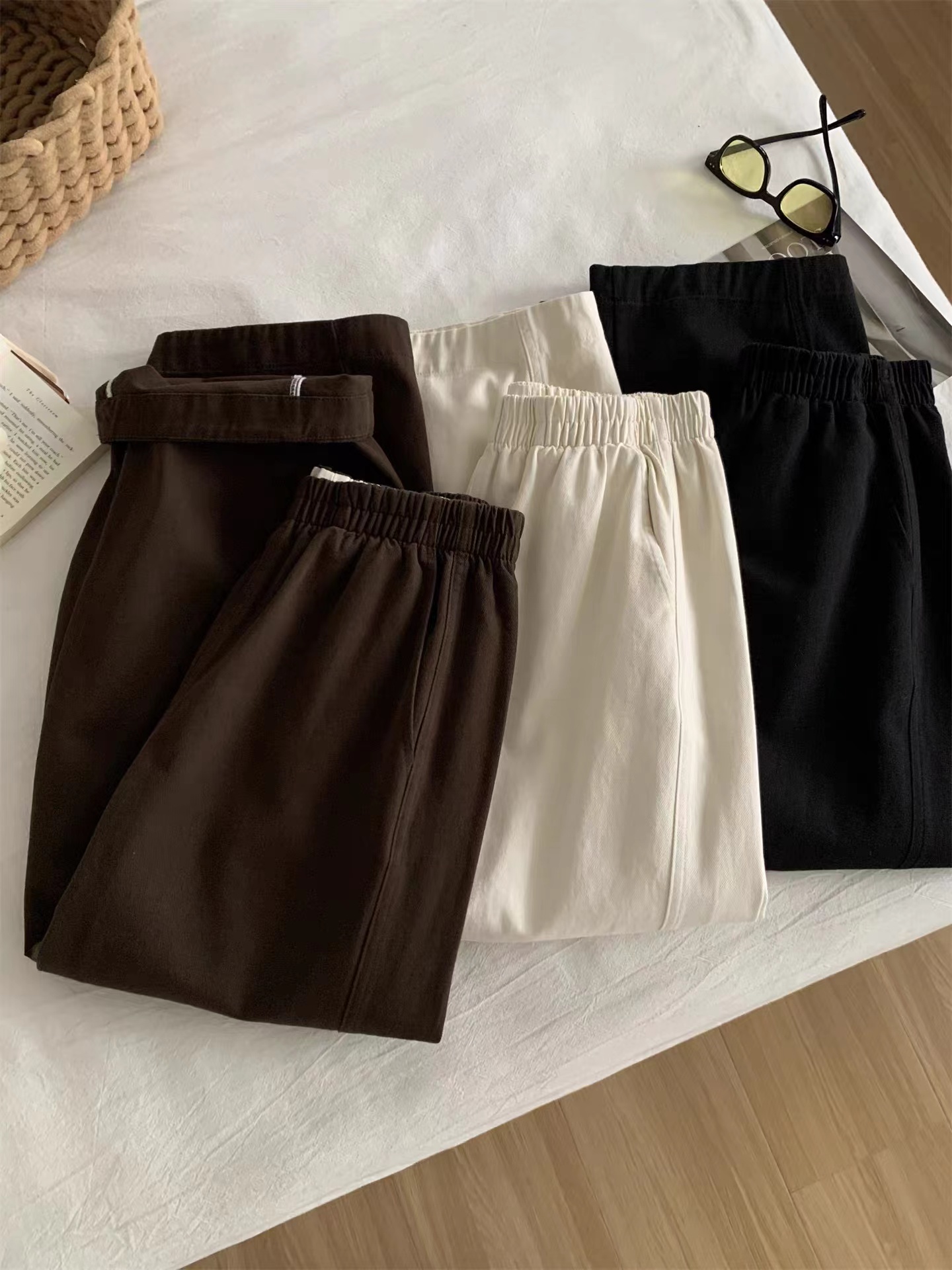 2026春季新款水洗棉阔腿工装裤女遮肉显瘦松紧高腰直筒裤韩版九分奶奶裤这条必收~好看好穿到炸裂~一眼就看中~自留2色换着穿~手感质感都是高品质好货!搭配起来很显瘦!~三个颜色都很漂亮~舒适宽幅松紧腰收腰,两侧实用插袋,手机钥匙随手放,兼顾美感与便利,选用斜纹布材质面料柔软舒适亲肤又兼顾实穿与打理便利立体剪裁设计,藏肉于无形侧缝线前移,ji具设计感视觉更加立体显瘦裤长对小个子也非常友好!!