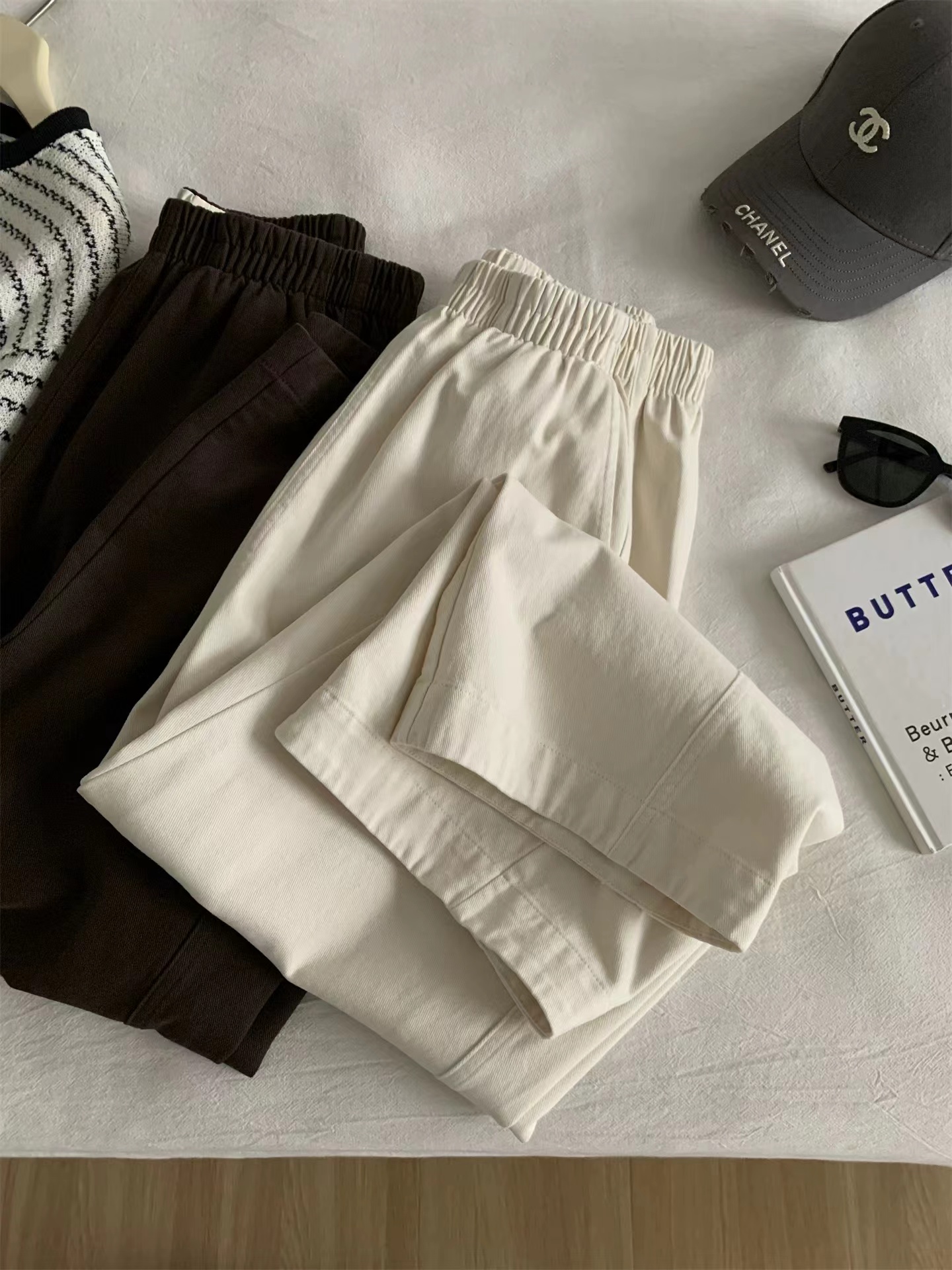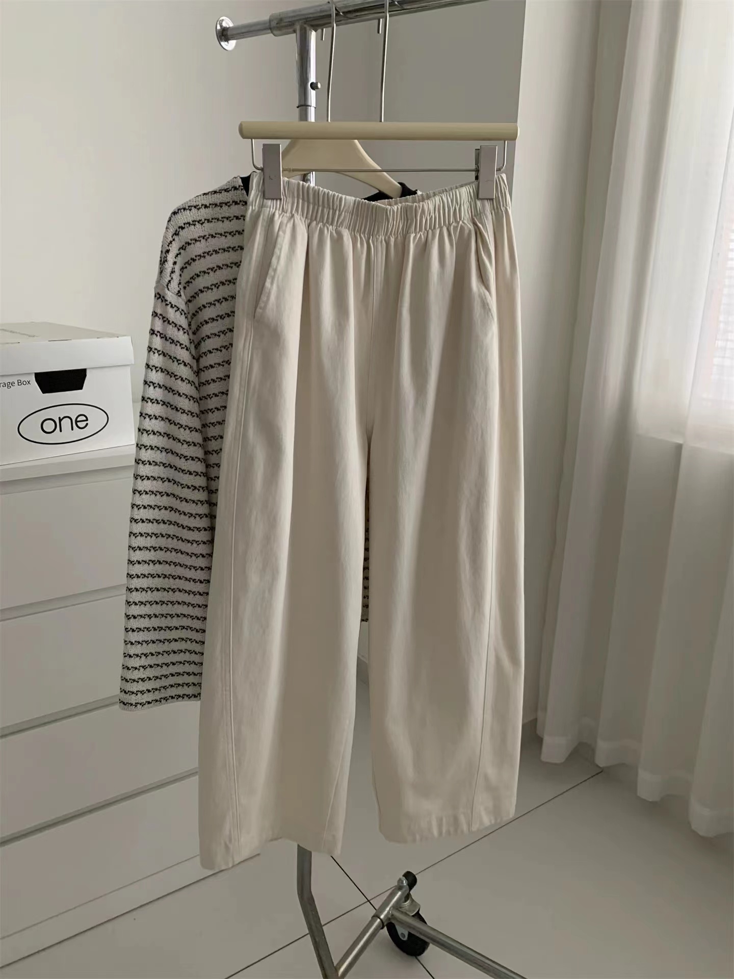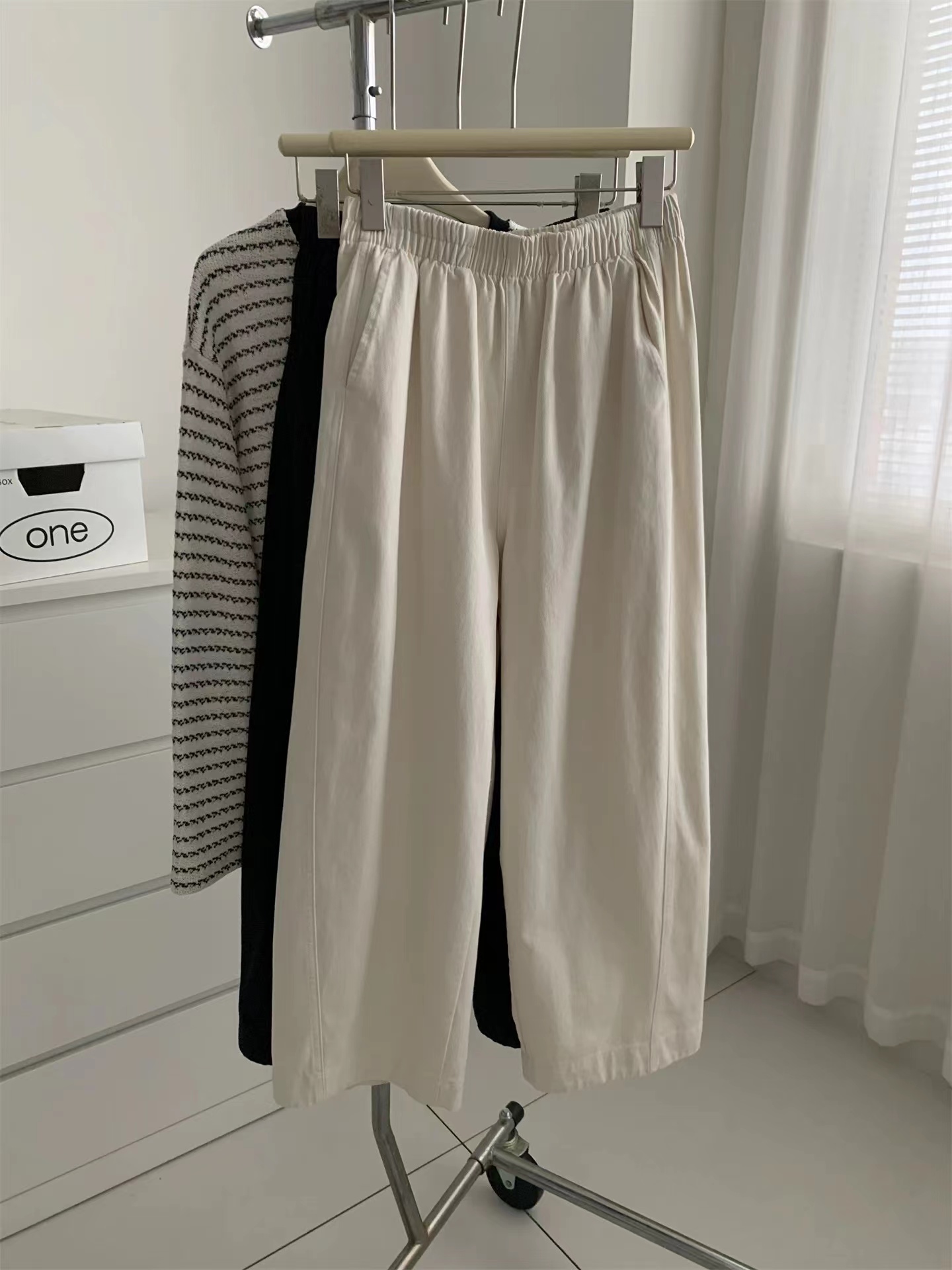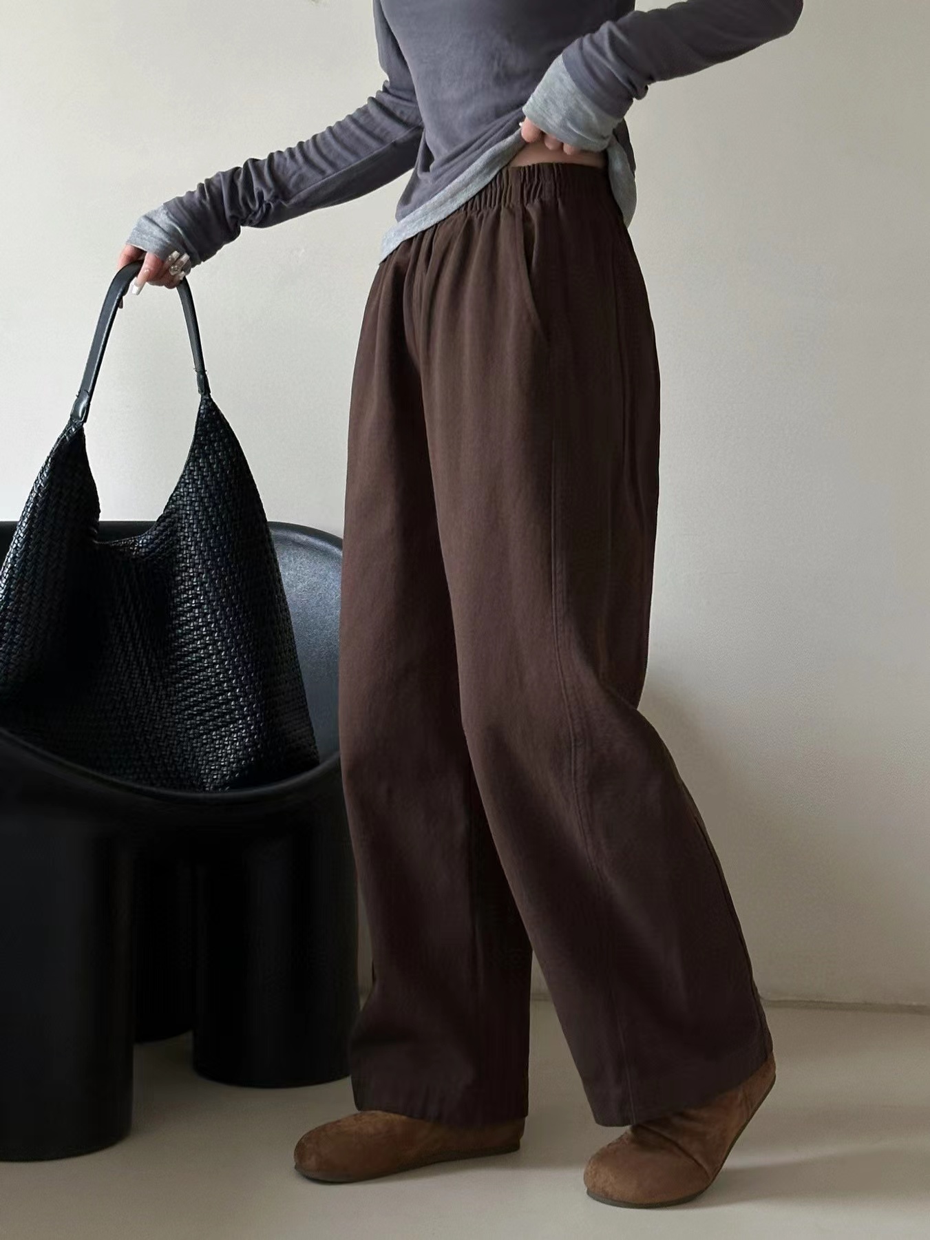 2026春季新款水洗棉阔腿工装裤女遮肉显瘦松紧高腰直筒裤韩版九分奶奶裤这条必收~好看好穿到炸裂~一眼就看中~自留2色换着穿~手感质感都是高品质好货!搭配起来很显瘦!~三个颜色都很漂亮~舒适宽幅松紧腰收腰,两侧实用插袋,手机钥匙随手放,兼顾美感与便利,选用斜纹布材质面料柔软舒适亲肤又兼顾实穿与打理便利立体剪裁设计,藏肉于无形侧缝线前移,ji具设计感视觉更加立体显瘦裤长对小个子也非常友好!!