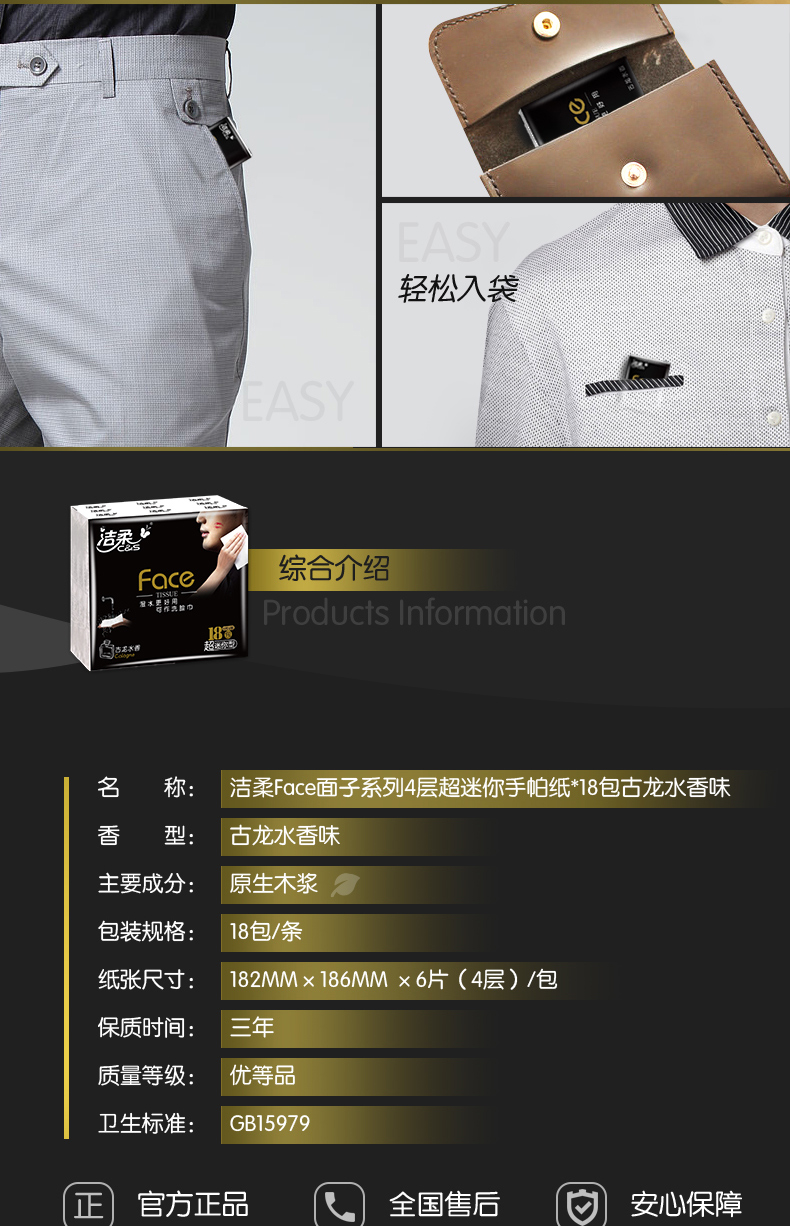 洁柔手帕纸便携式小包纸巾餐巾纸古龙水香可湿水面巾纸36包