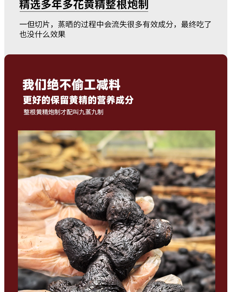古法工艺九蒸九晒黄精250g/罐 0蔗糖0添加药食同源滋补 真空包装开袋即食