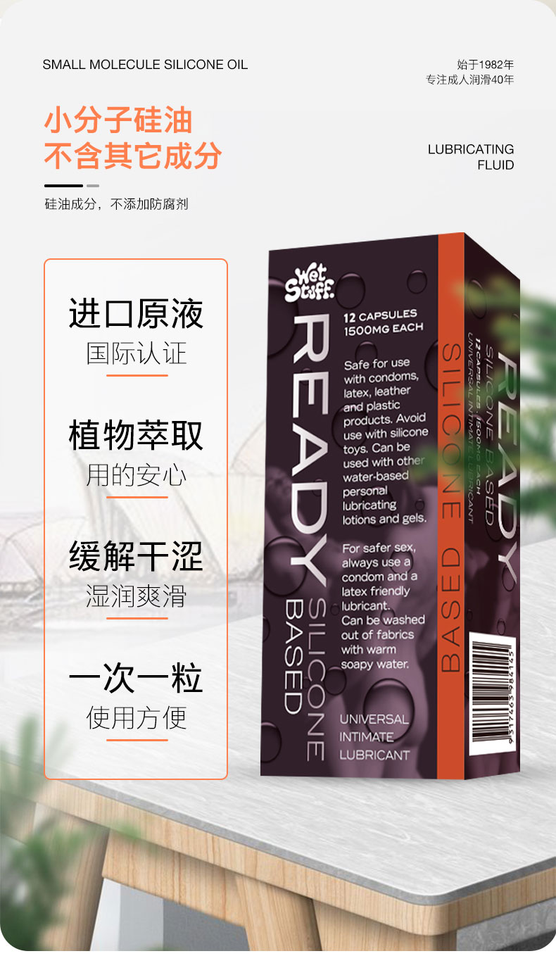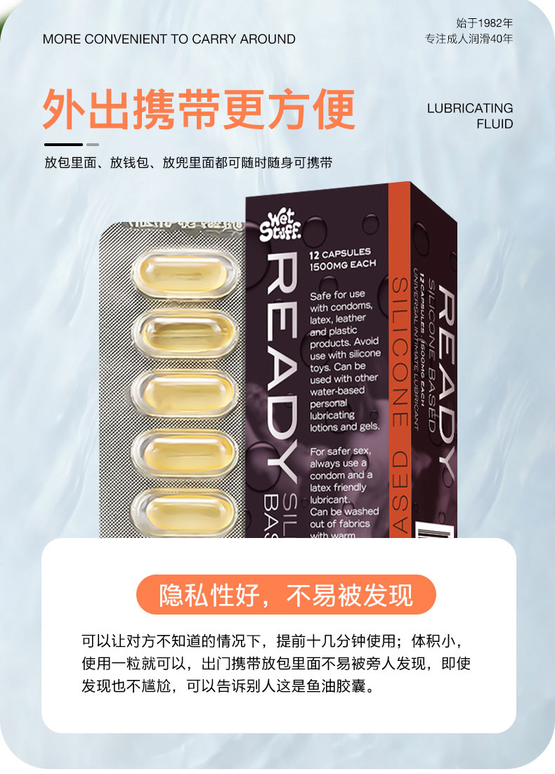 Wet Stuff硅基胶囊人体润滑剂油液12粒装男女用阴道肛门菊花长效久