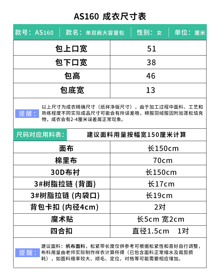 裁缝学苑AS160大容量短途旅行包纸样女轻便帆布单肩包学生双肩包书包