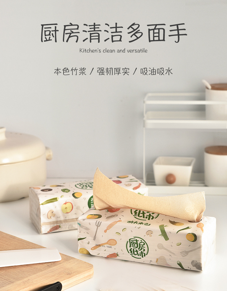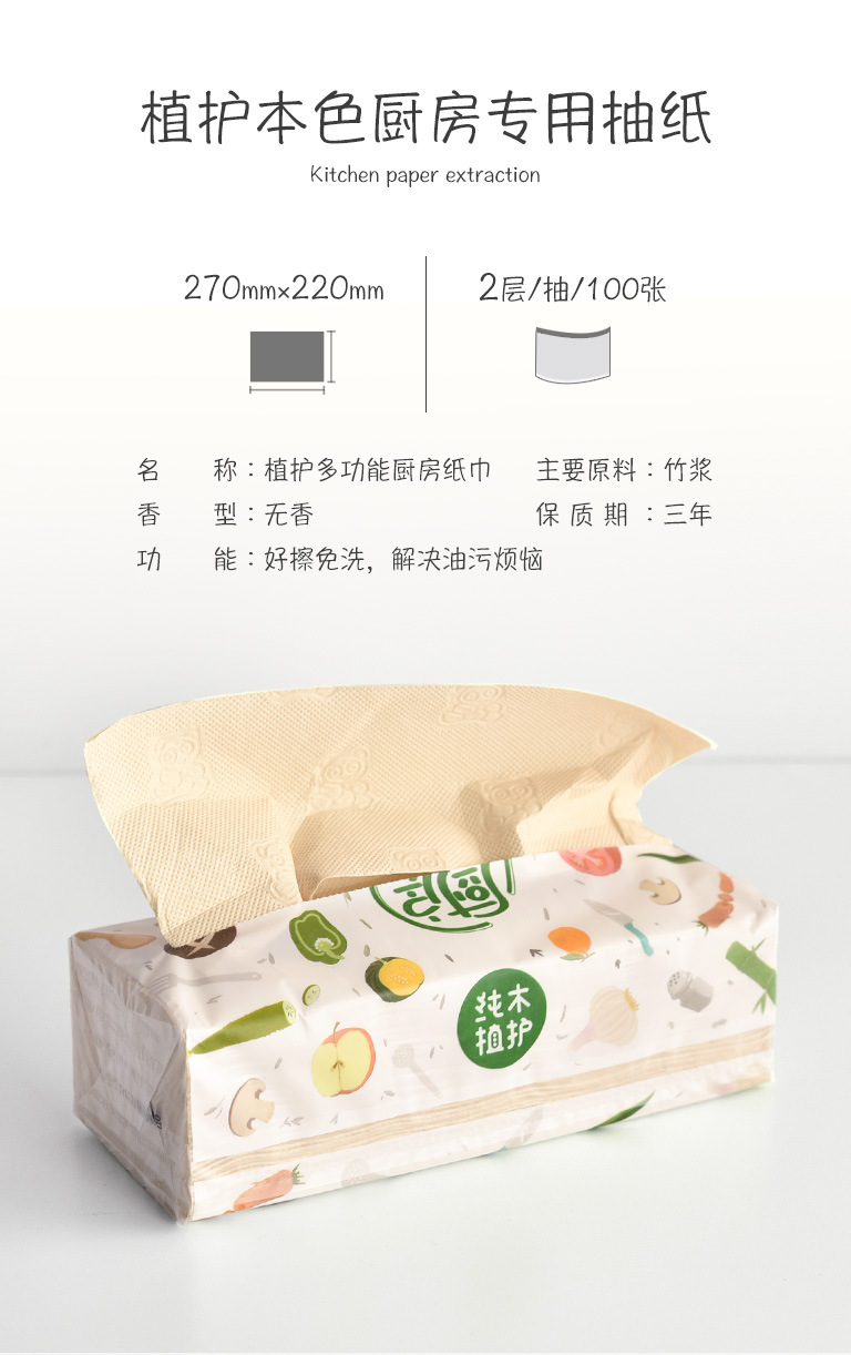 日用百货-植护厨房纸3包装吸水吸油纸巾竹浆本色抽纸